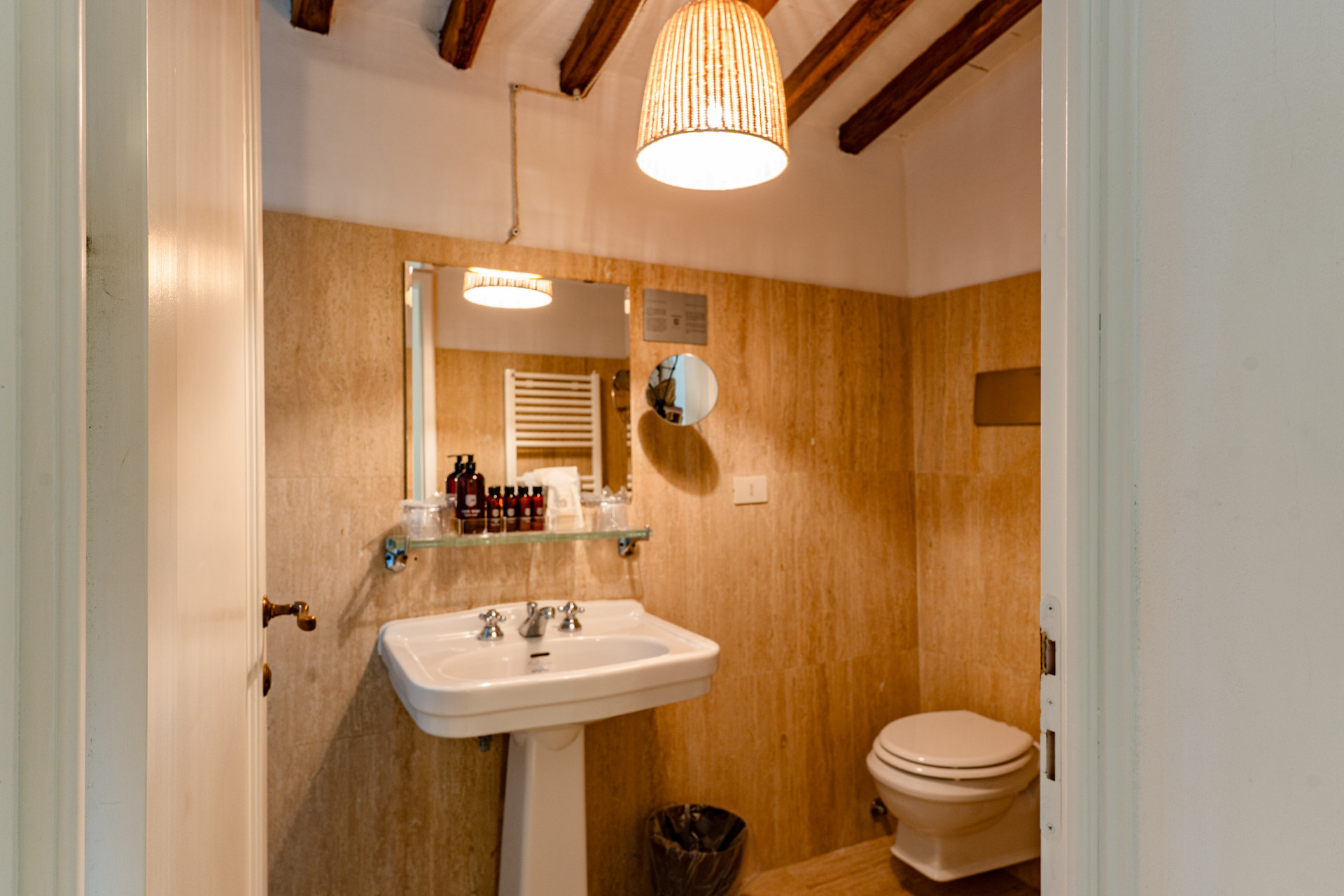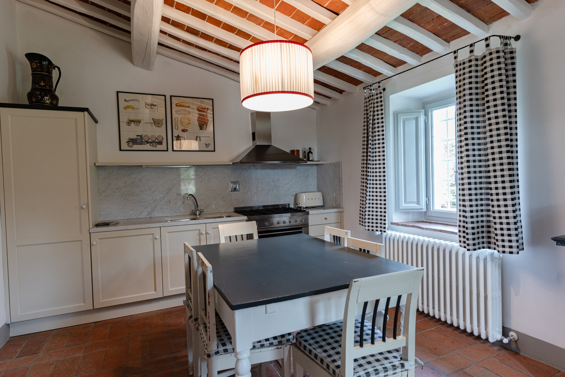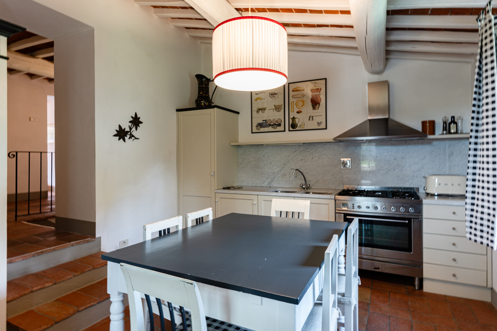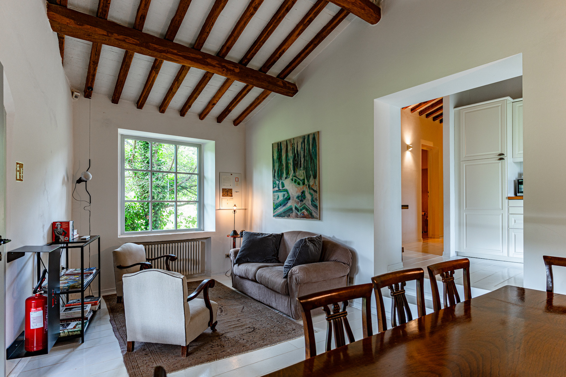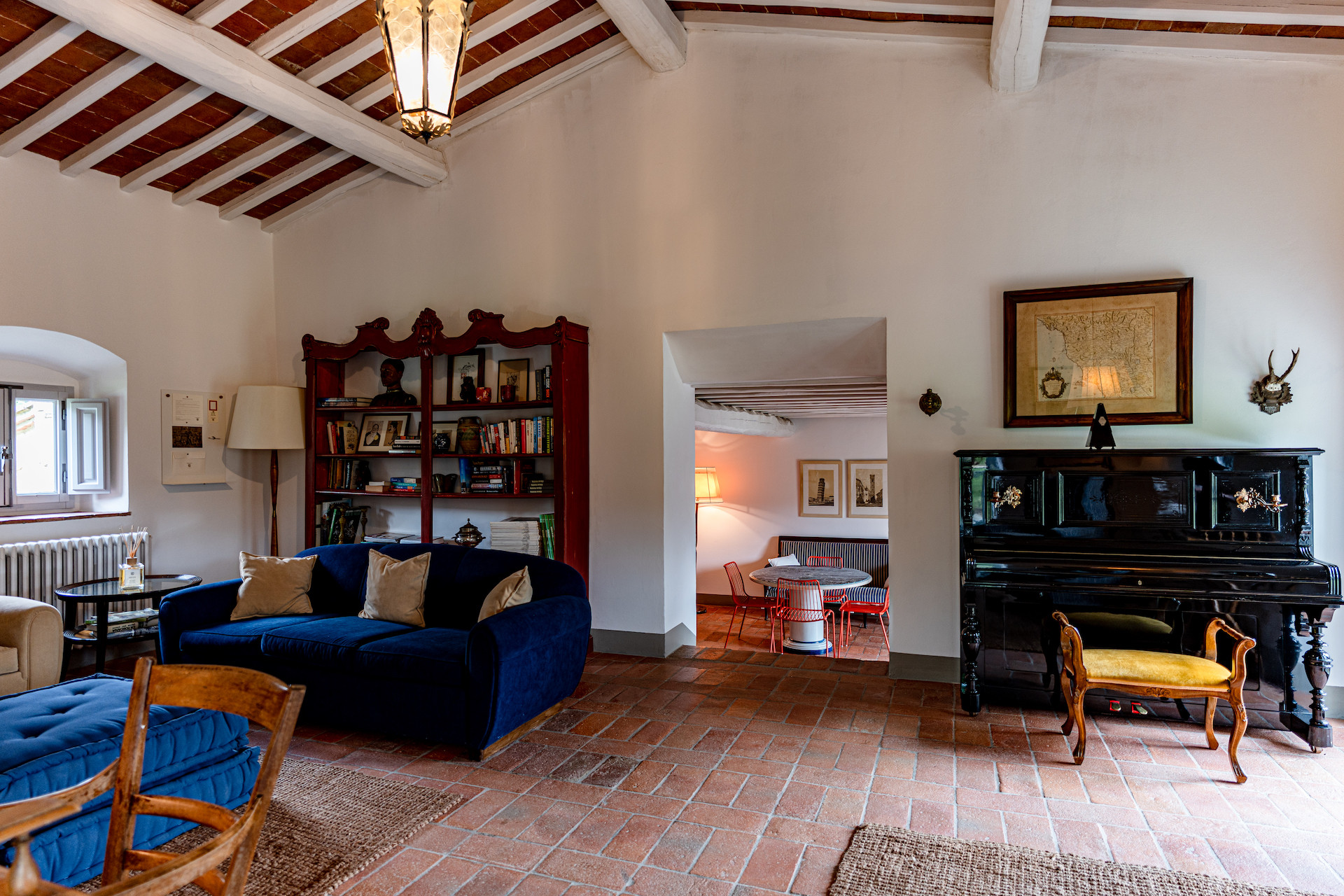 the Villa has 6 suites : The main house hosts up to 12 people in 6 spacious rooms. At the heart of this farmhouse is its large kitchen and dining area. The spacious living room with fireplace is the perfect place to spend cooler evenings. The veranda and outdoor areas have everything you need to completely unwind outdoors. A fully equipped barbecue area allows you to enjoy unrushed al fresco dinners late into the night.The main villa hosts spacious areas for getting together for a variety of occasions: a large kitchen with a timeless, classic style leads to a bright dining room and a veranda surrounded by roses. The TV room and living room with fireplace will be the ideal places to take a comfortable break.