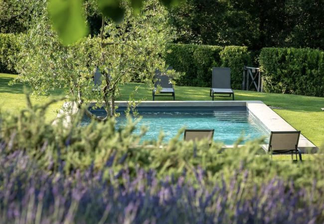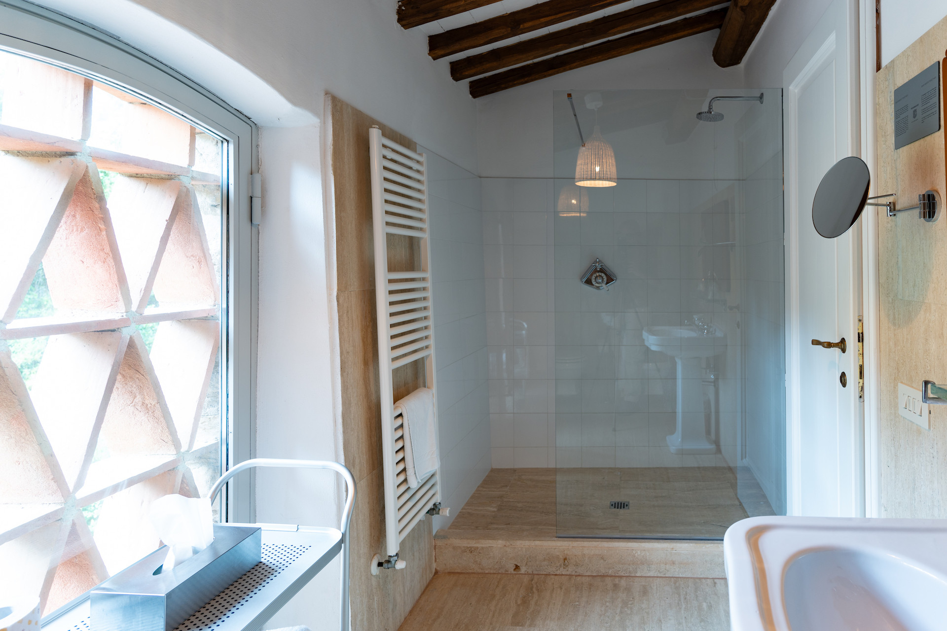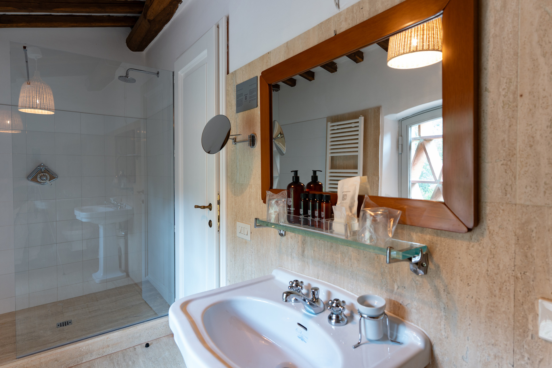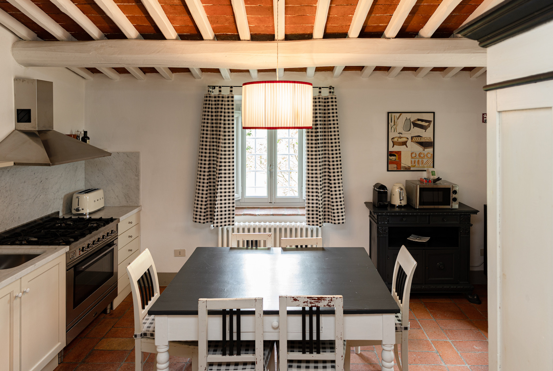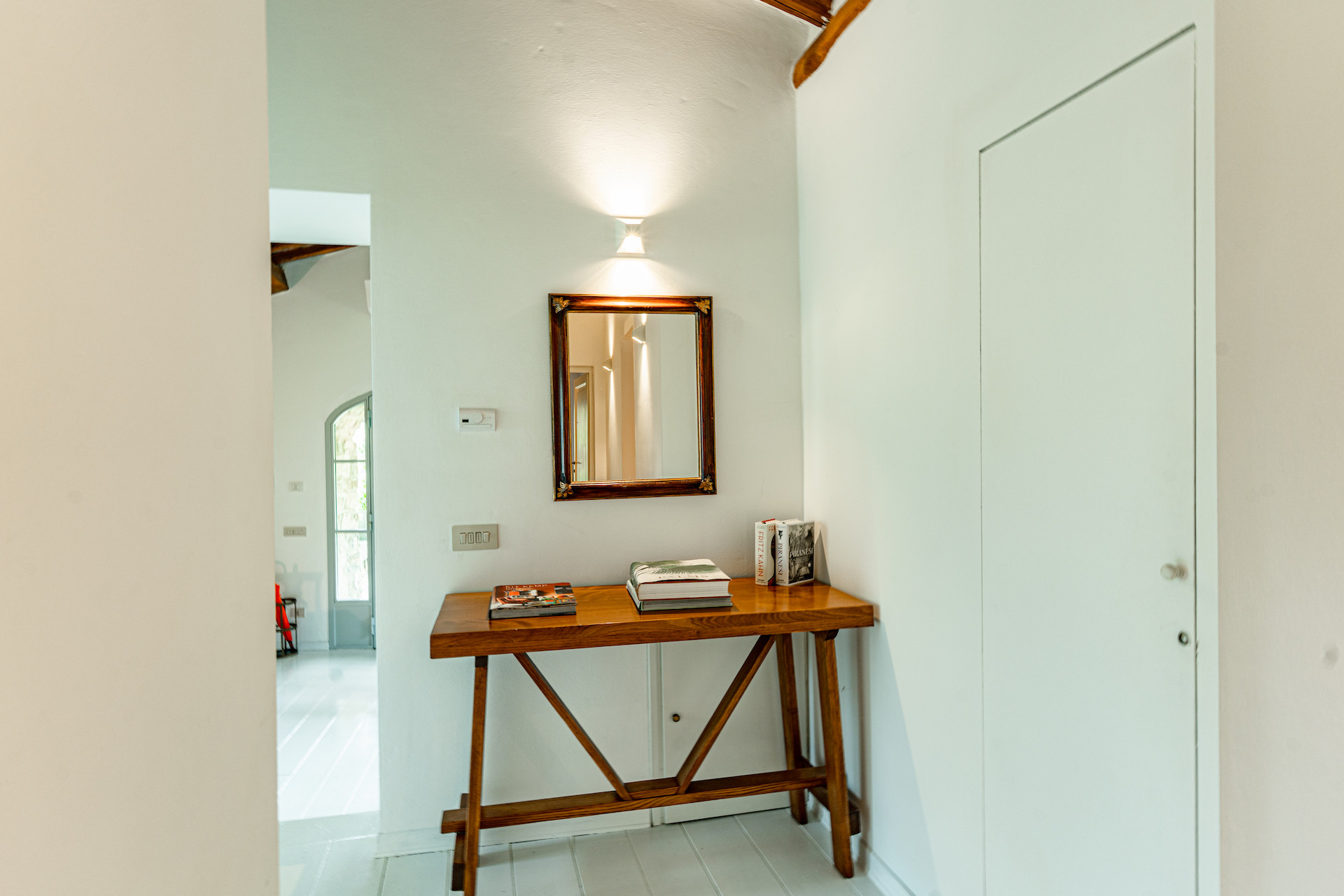 the Villa has 6 suites : The main house hosts up to 12 people in 6 spacious rooms. At the heart of this farmhouse is its large kitchen and dining area. The spacious living room with fireplace is the perfect place to spend cooler evenings. The veranda and outdoor areas have everything you need to completely unwind outdoors. A fully equipped barbecue area allows you to enjoy unrushed al fresco dinners late into the night.The main villa hosts spacious areas for getting together for a variety of occasions: a large kitchen with a timeless, classic style leads to a bright dining room and a veranda surrounded by roses. The TV room and living room with fireplace will be the ideal places to take a comfortable break.