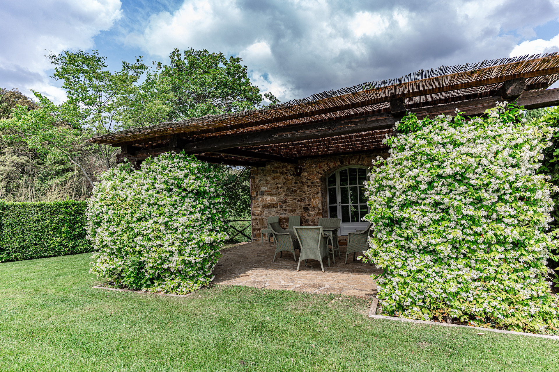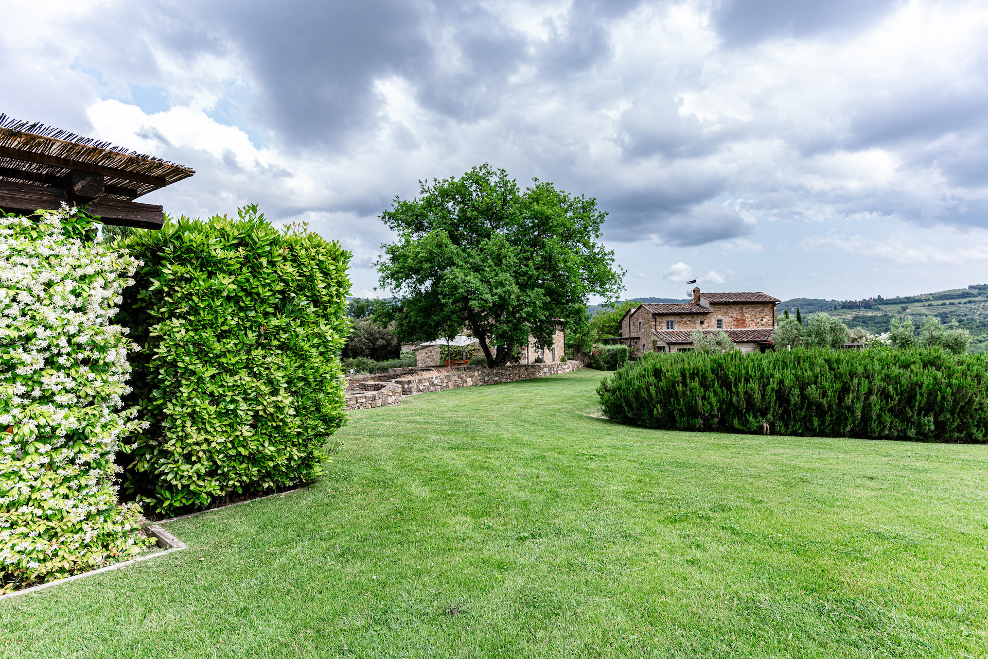 A peaceful corner in a clearing surrounded by oak forests and vineyards. Four distinct dwellings united by their classic, elegant farm style, and a thriving garden scattered with fruit trees and roses.The property is perfectly positioned between two of the region’s great villages of Greve and Panzanoin- Chianti, each 10 minutes drive away. Elegant and functional, Il Prato is ideal for anyone dreaming of a break immersed in the coolness and fragrance of the forest.