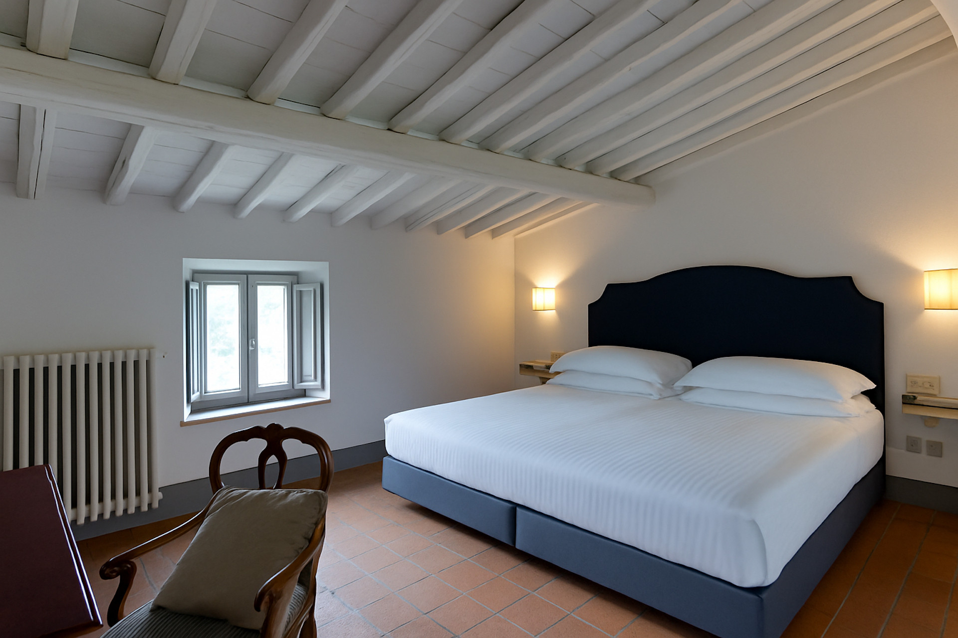 Nestled on the Chianti hills between forests and streams, Halfway between Florence and Siena, Villa appears, in an uncontaminated landscape of streams, forests and ancient hamlets scattered on the hills surrounding it.