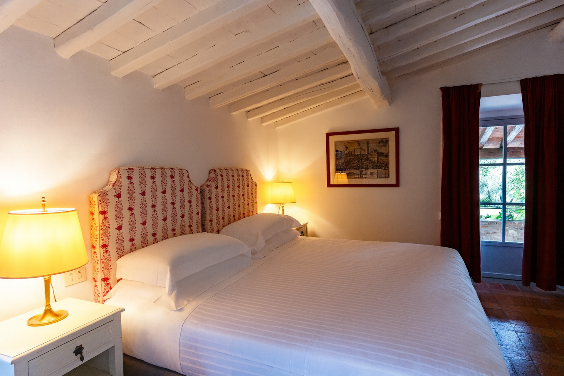 the Cottage has 2 suites: Not far from the main house, Il Cottage is a charming stone farmhouse with two master bedrooms with private bathrooms. It exudes a warm, homey atmosphere with its elegant lounge and fully equipped kitchen, while a small stone balcony provides the perfect spot to read a book on a hot day.
