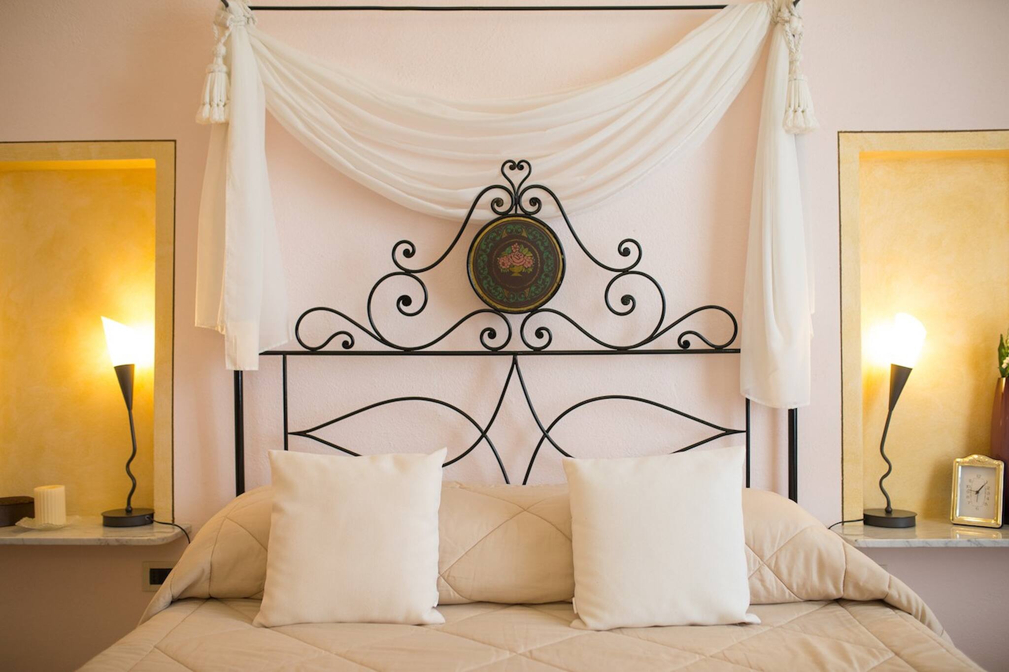 The villa s 350 square metres are disposed on two floors. On the ground floor is an extremely well-equipped kitchen with a small larder, a dining room with an elegant wood fireplace in lava stone, divans and armchairs and Sat. TV. There is also another large salon with frescoed ceilings, divans and armchairs, a dining room with a large, crystal dining table and original bookcases, a double bedroom with ensuite bathroom.