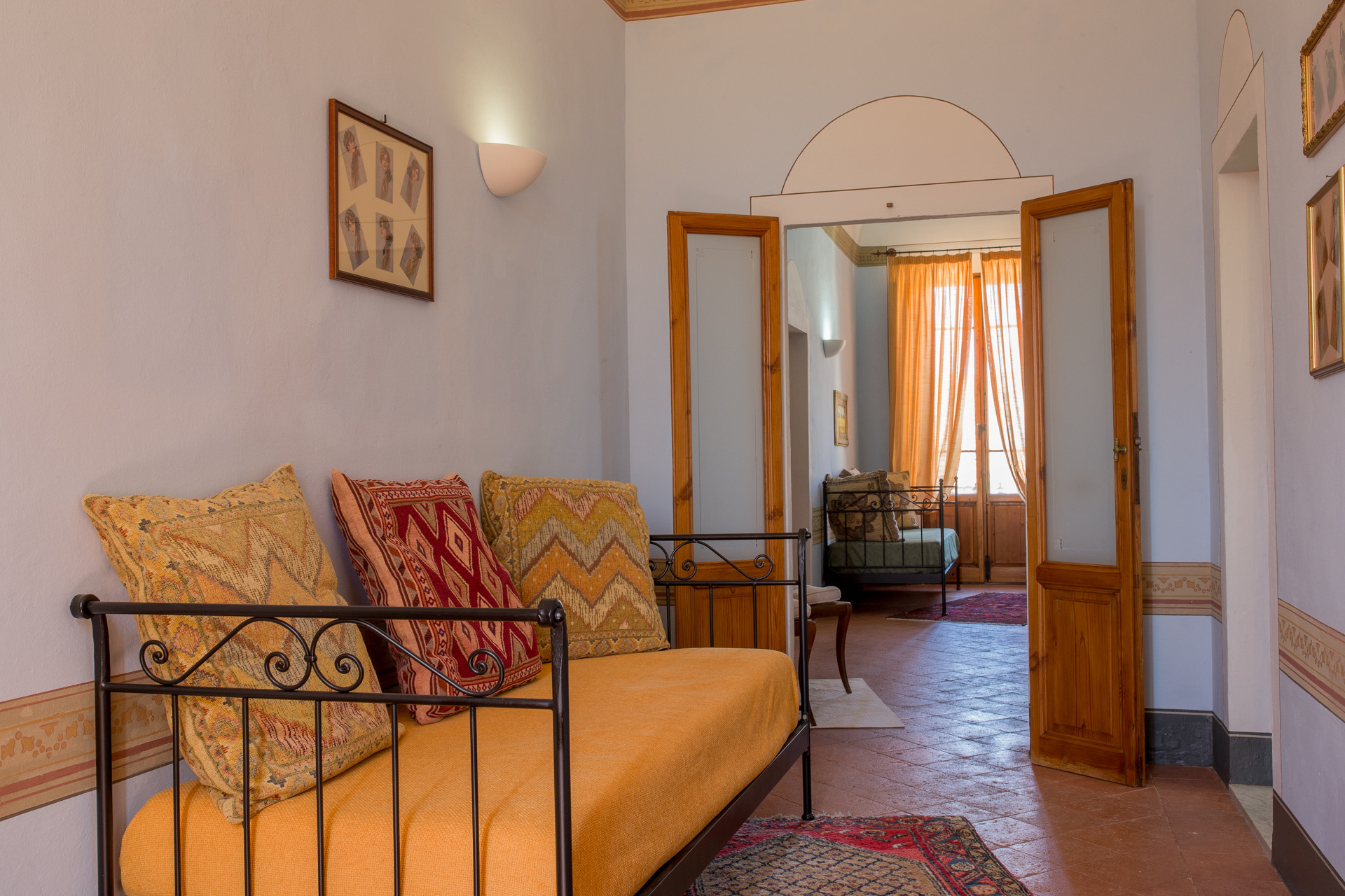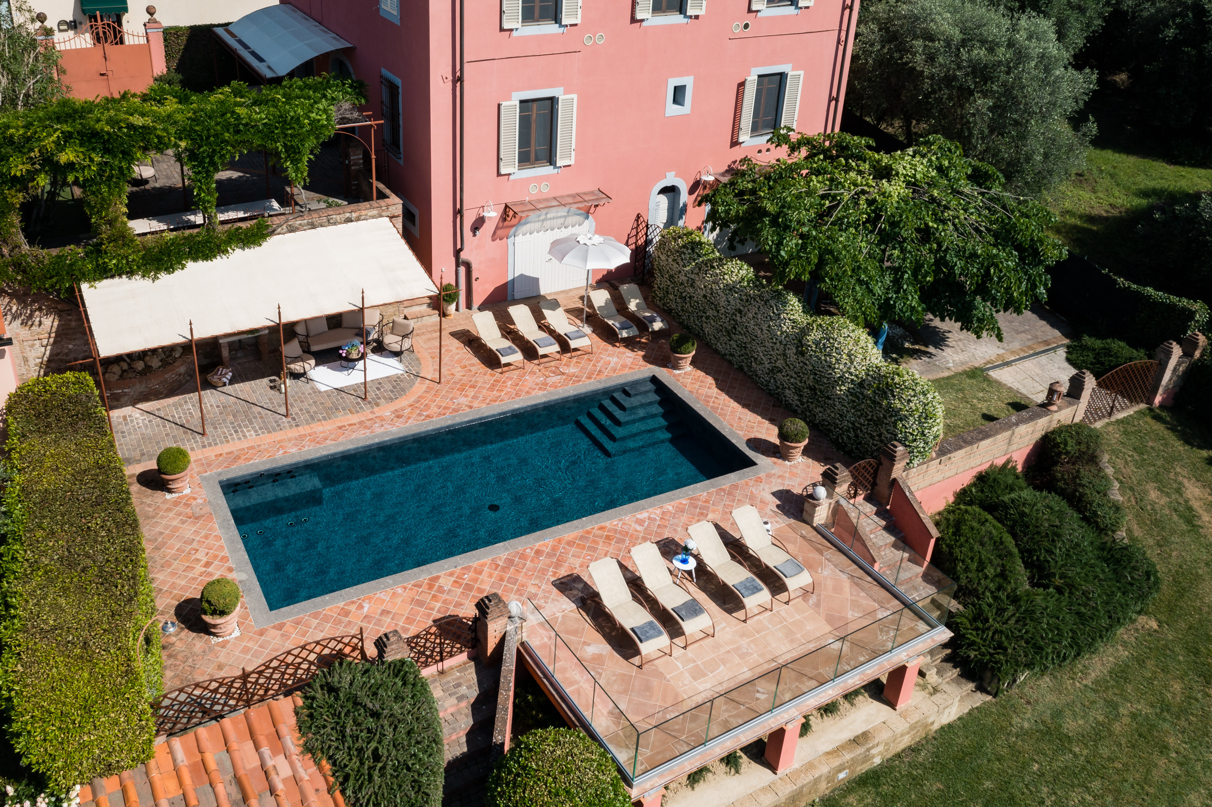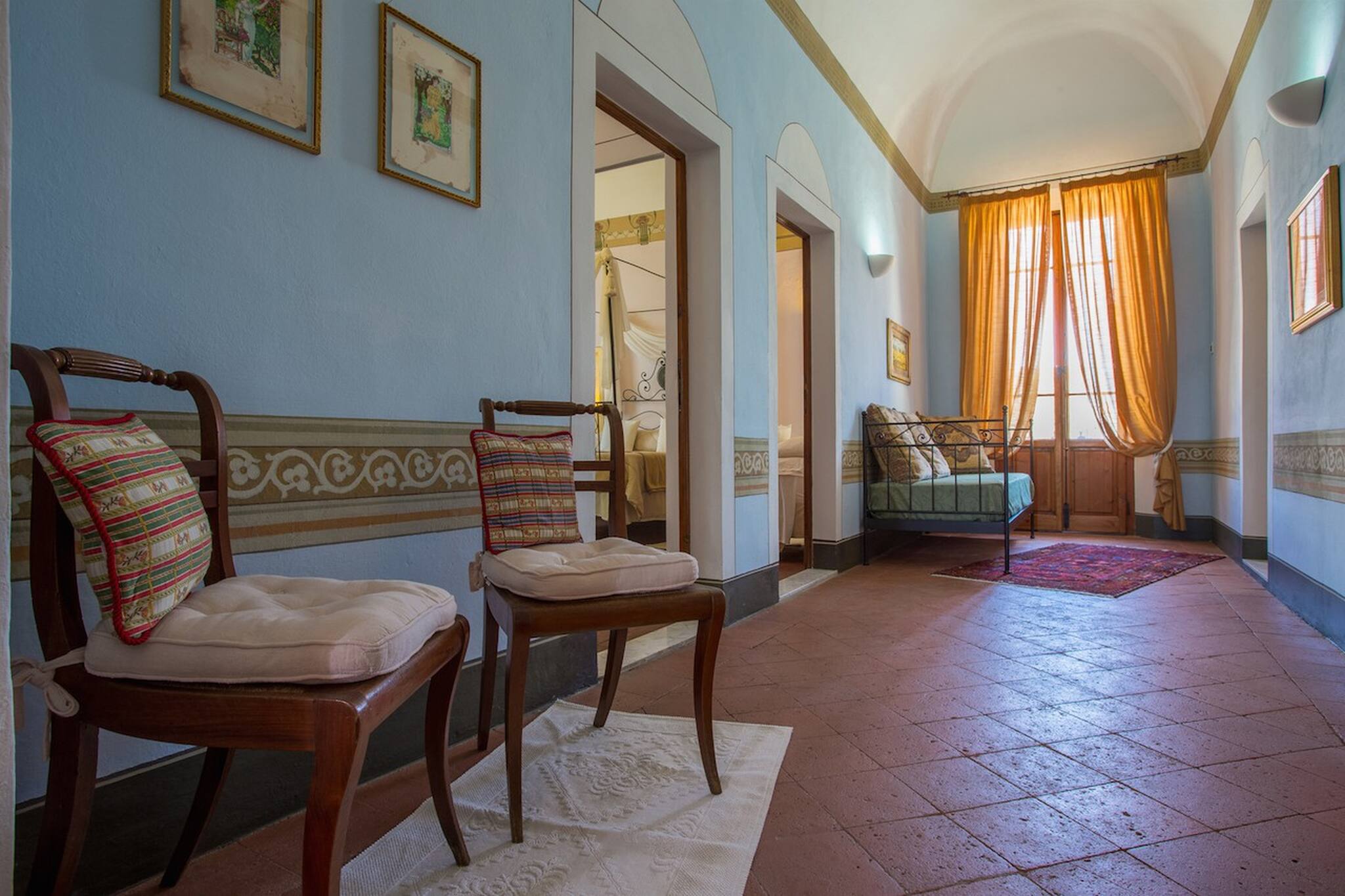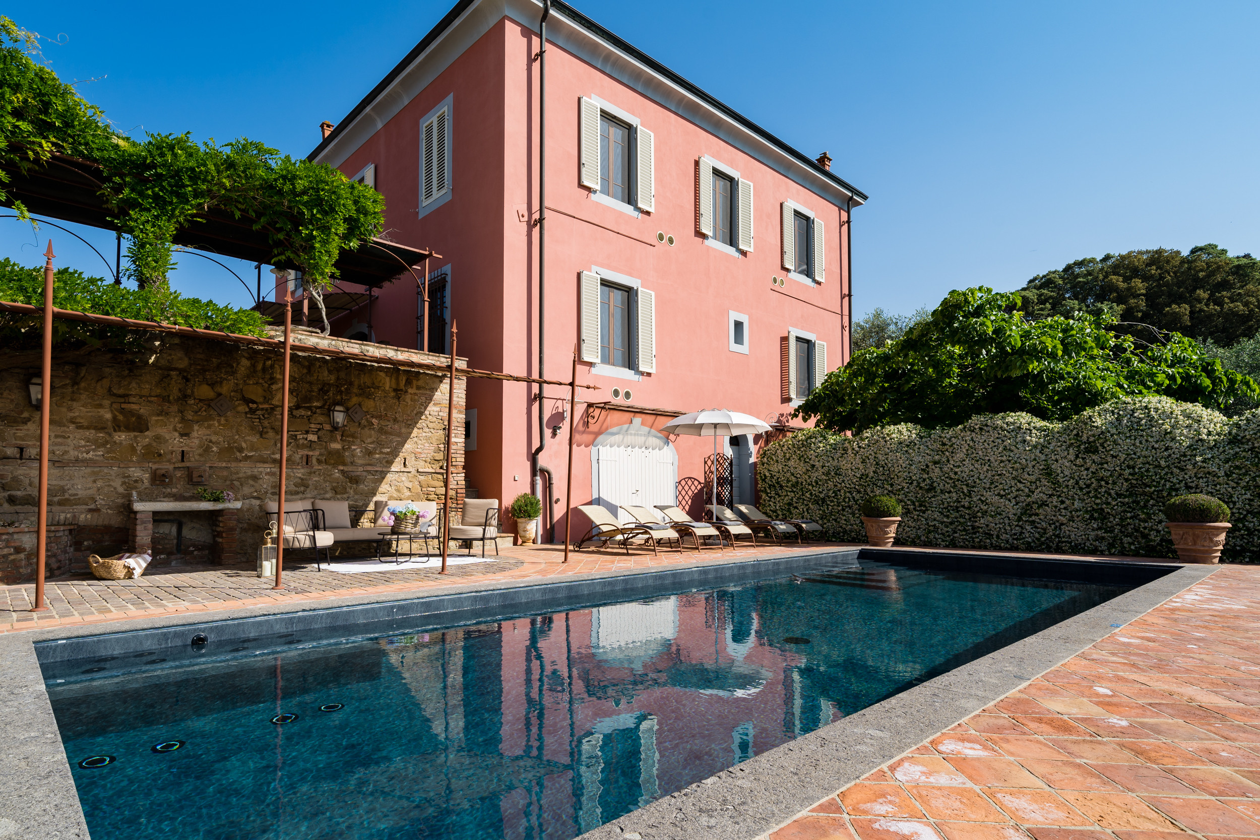 Volterra is surrounded by olive groves and vineyards and has not lost the the authentic aura typical of the whole of Tuscany. The village developed around the original tower and sronghold and one of the villas in the area is Villa. It dates back to the 18 hundreds and is in the elegant Liberty style of the period. It was restructed many years ago , maintaining the original architectural characteristics. Furnished with extremely good taste with antique period furniture and ornaments, the villa has a particular elegance, enriched by precious decorations, paintings and the original vaulted ceilings .