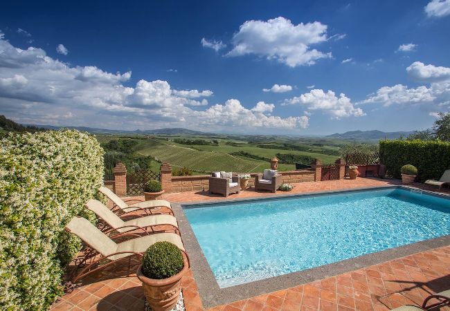 The villa in Peccioli has 5 bedrooms and has capacity for 13 people. The villa is 350 m². The villa can hold up to 13 guests (10+3).