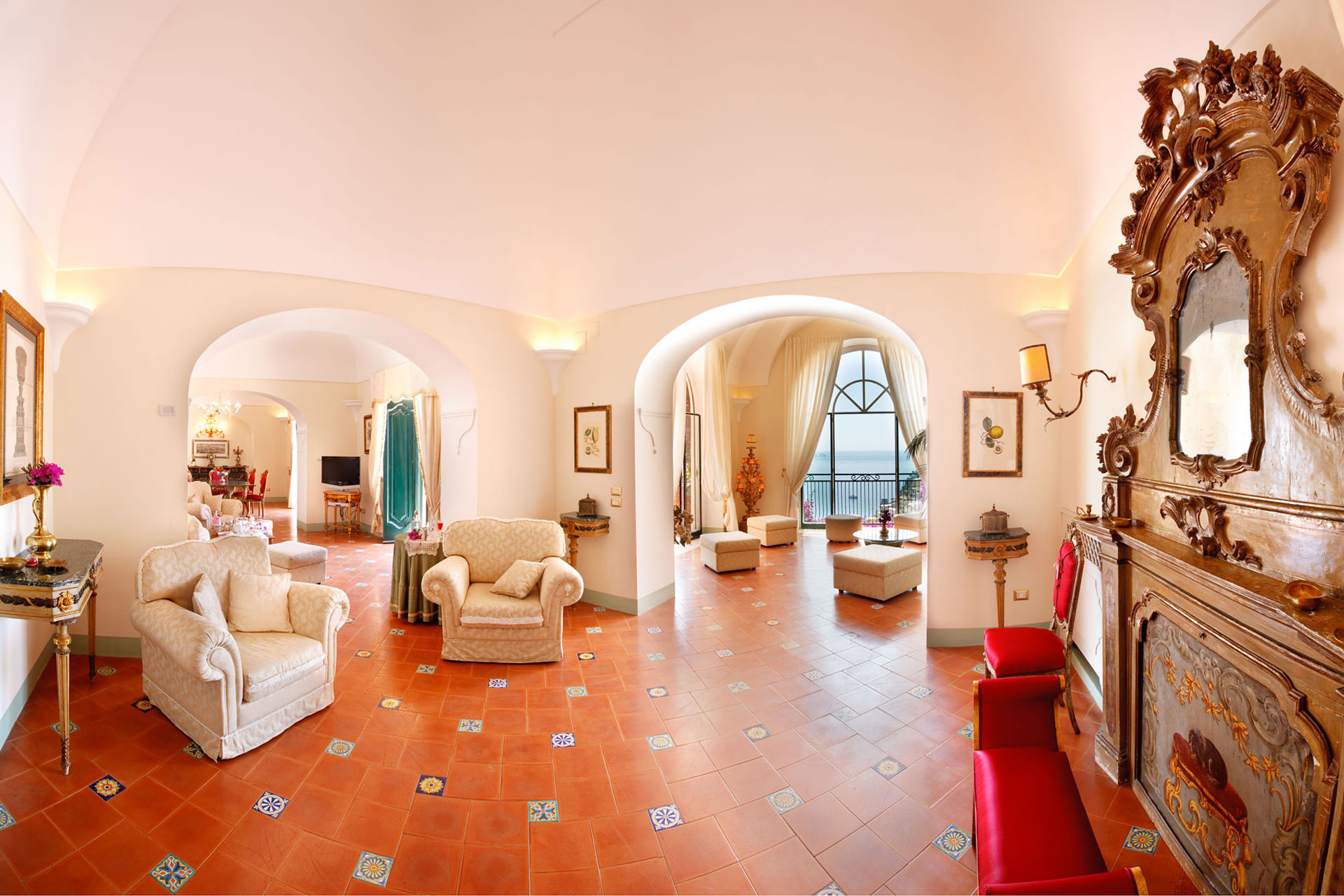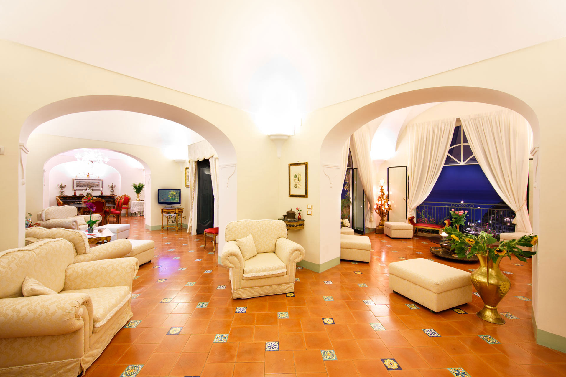 can access (through 3 French doors) the first terrace that offers a charming view of the main beach of Positano, of the coast and of the sea. The first terrace is 100 sq m large and it is equipped with tables, chairs, sun umbrellas and deck chairs.