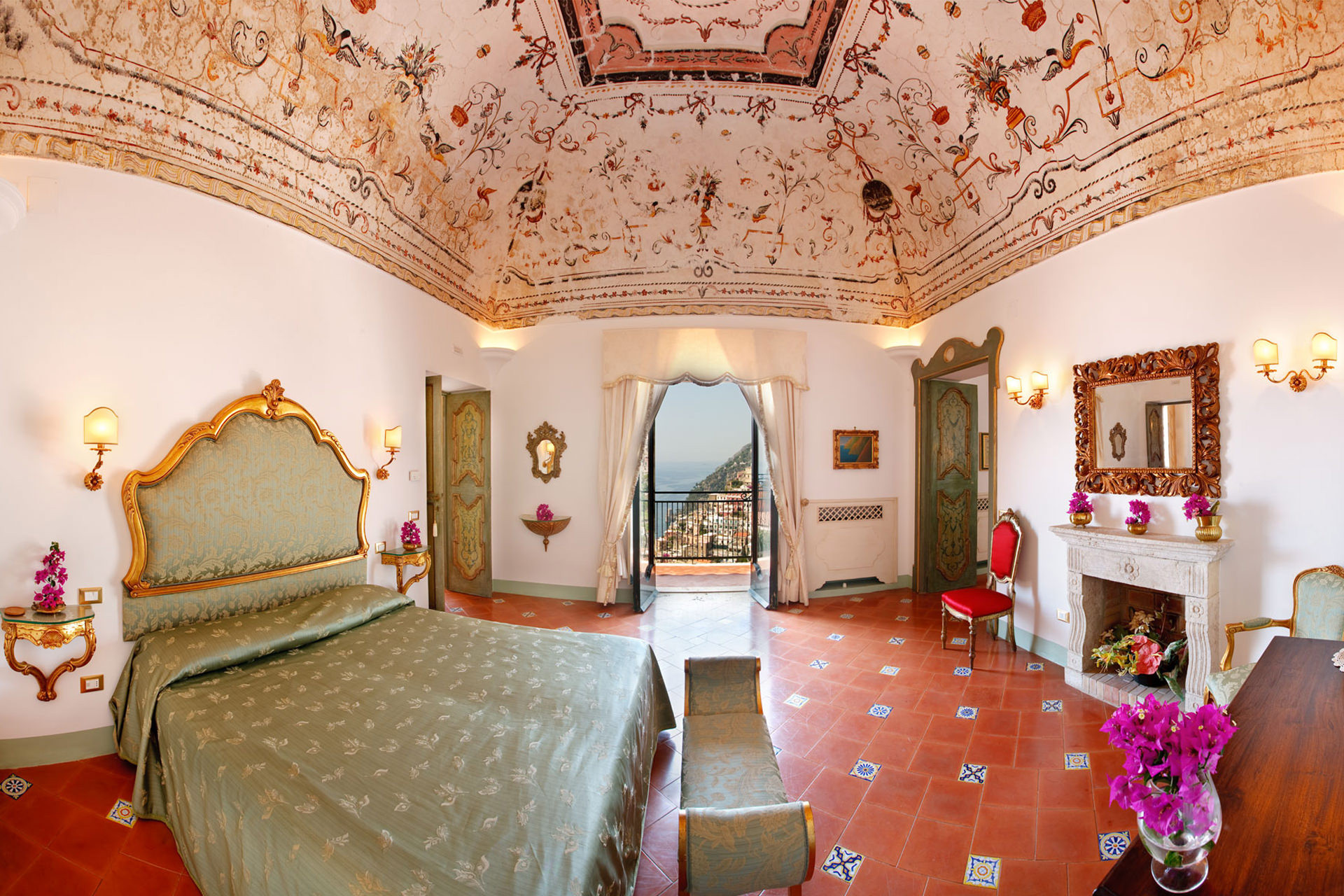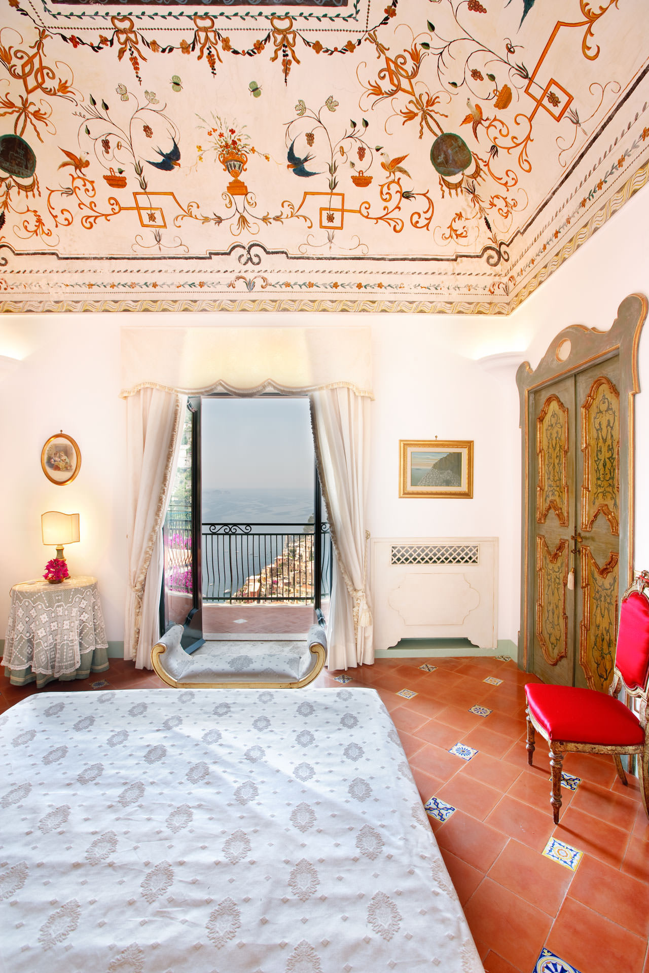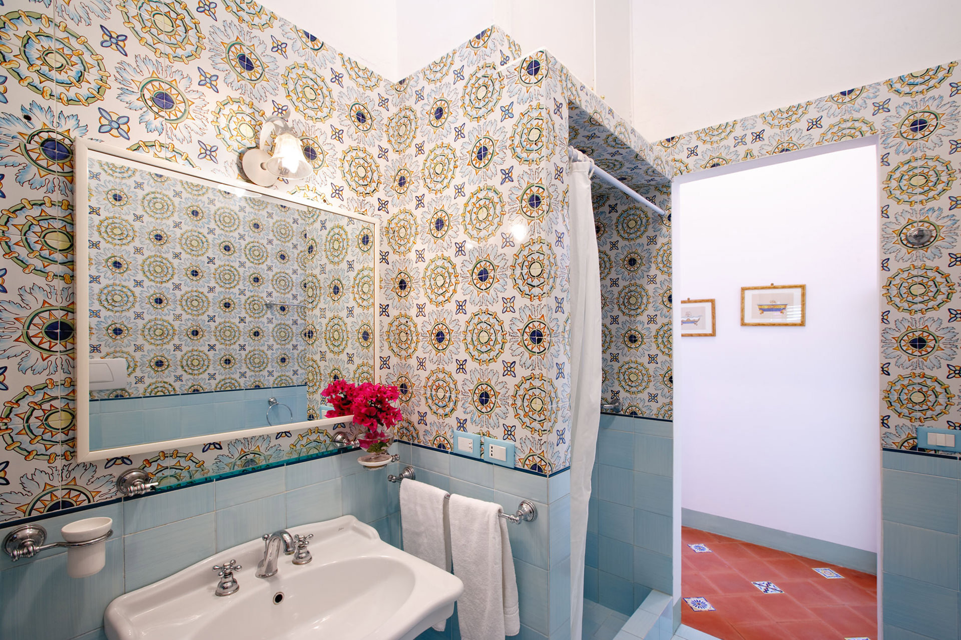 quadruple. The room has a Juliet balcony with sea view. The bedroom is equipped with an air conditioning/heating unit of course and it has got an en suite bathroom, with lucid hand-made majolica tiles and equipped with a washbasin, a toilet, a fully enclosed shower and a hairdryer.