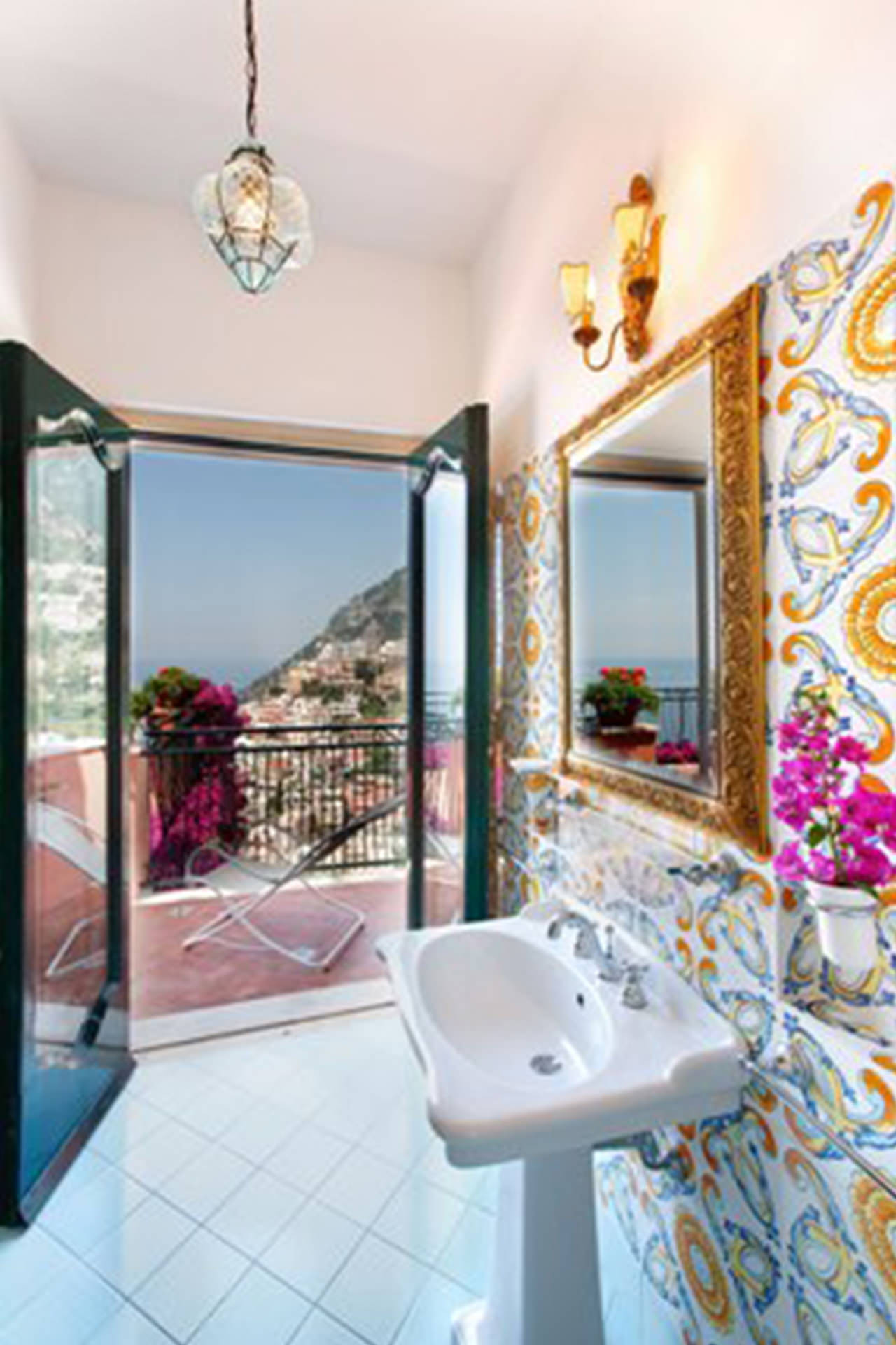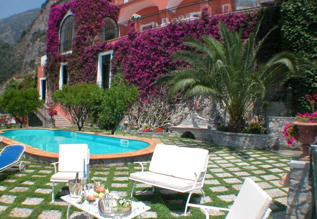 As mentioned above, the villa has got a swimming pool that is 4 meters large, 10 meters long and 1.4 meters deep. The swimming pool area is equipped with tables, chairs, sun umbrellas, sun loungers and external showers. By the pool there is also a bathroom equipped with a washbasin and a toilet. From the swimming pool you will enjoy a fascinating view of the main beach of Positano Spiaggia Grande), of the coast and of the sea.