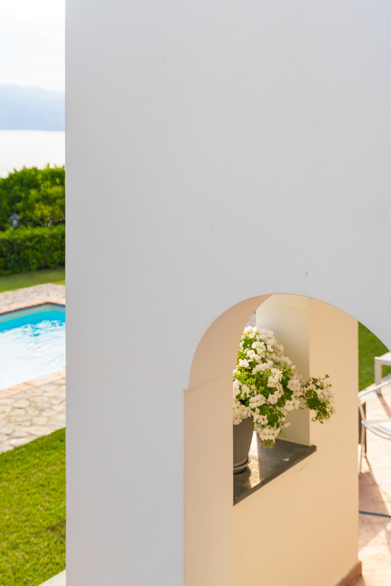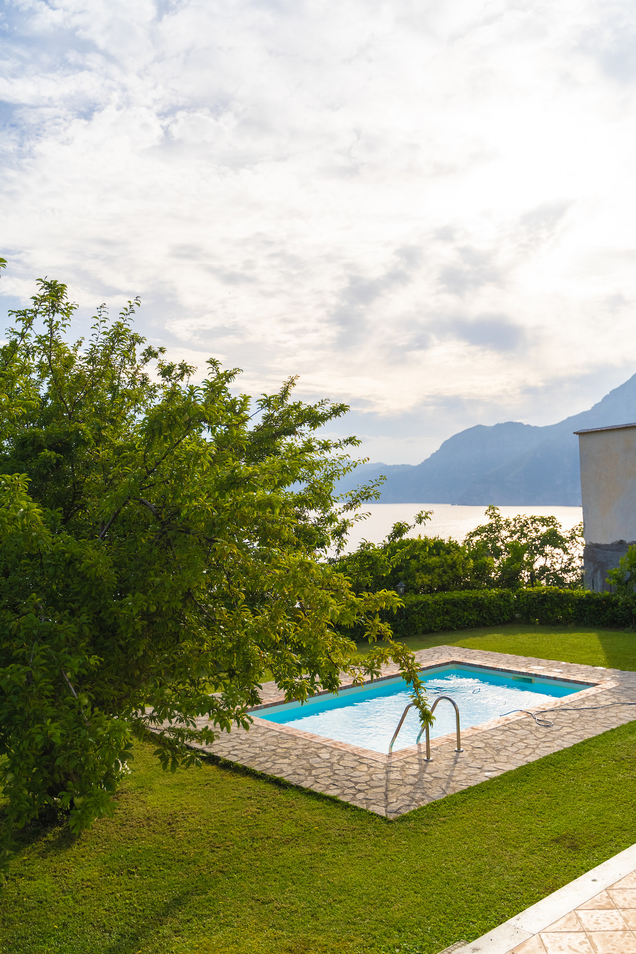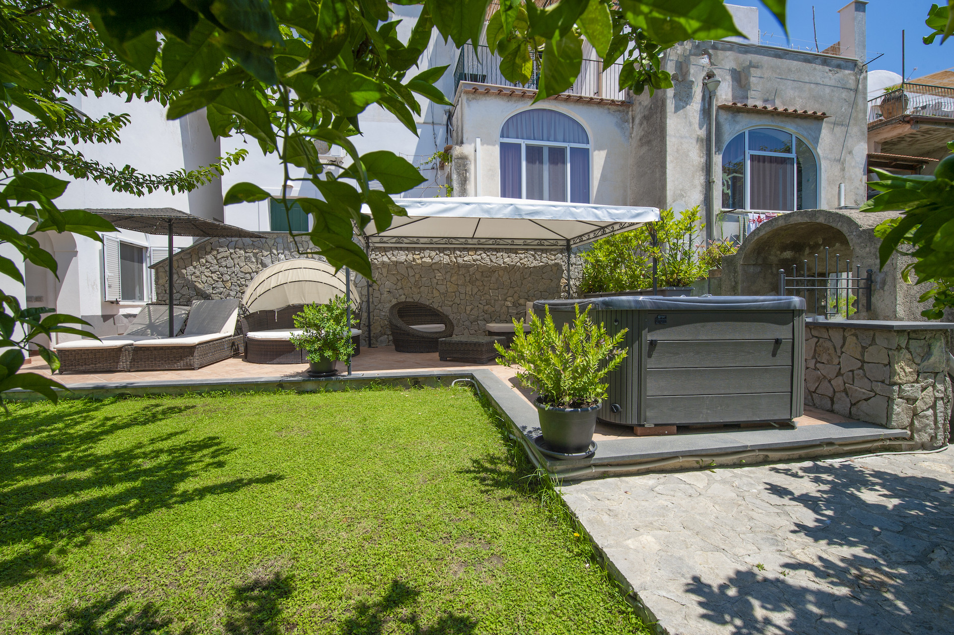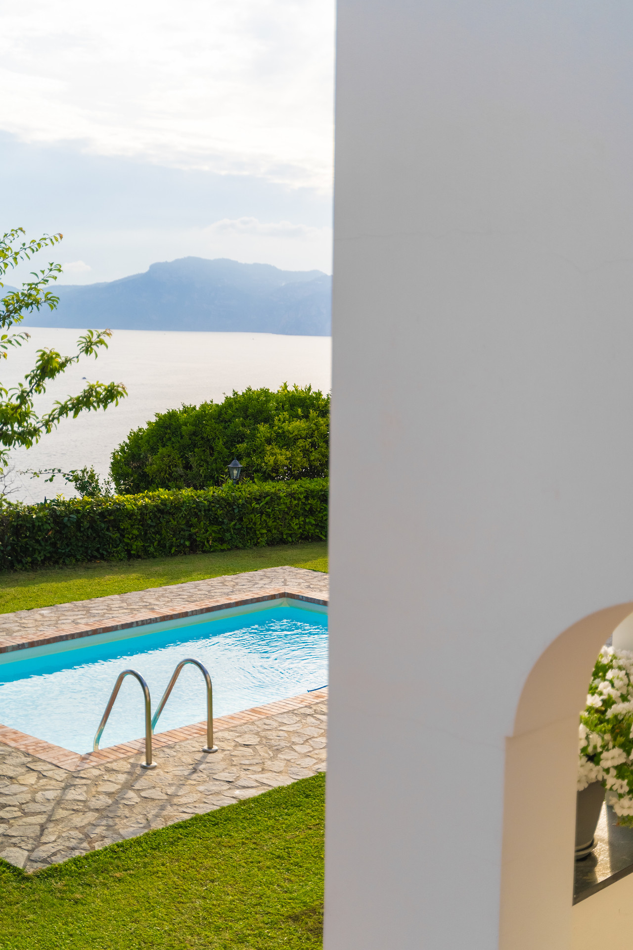 The terrace is 100 square meters (1076 square feet) large. The terrace is equipped with a wicker sofa and two armchairs, a circular wicker sofa with an attached awning, as well as with tables, chairs and two large umbrellas. From the terrace you can enjoy a stunning view of the sea, the islands of Li Galli and Praiano. In addition, you will have at your disposal a seasonal above-ground swimming pool of 4x8. From the pool you can enjoy a fascinating view of the sea and the garden.
