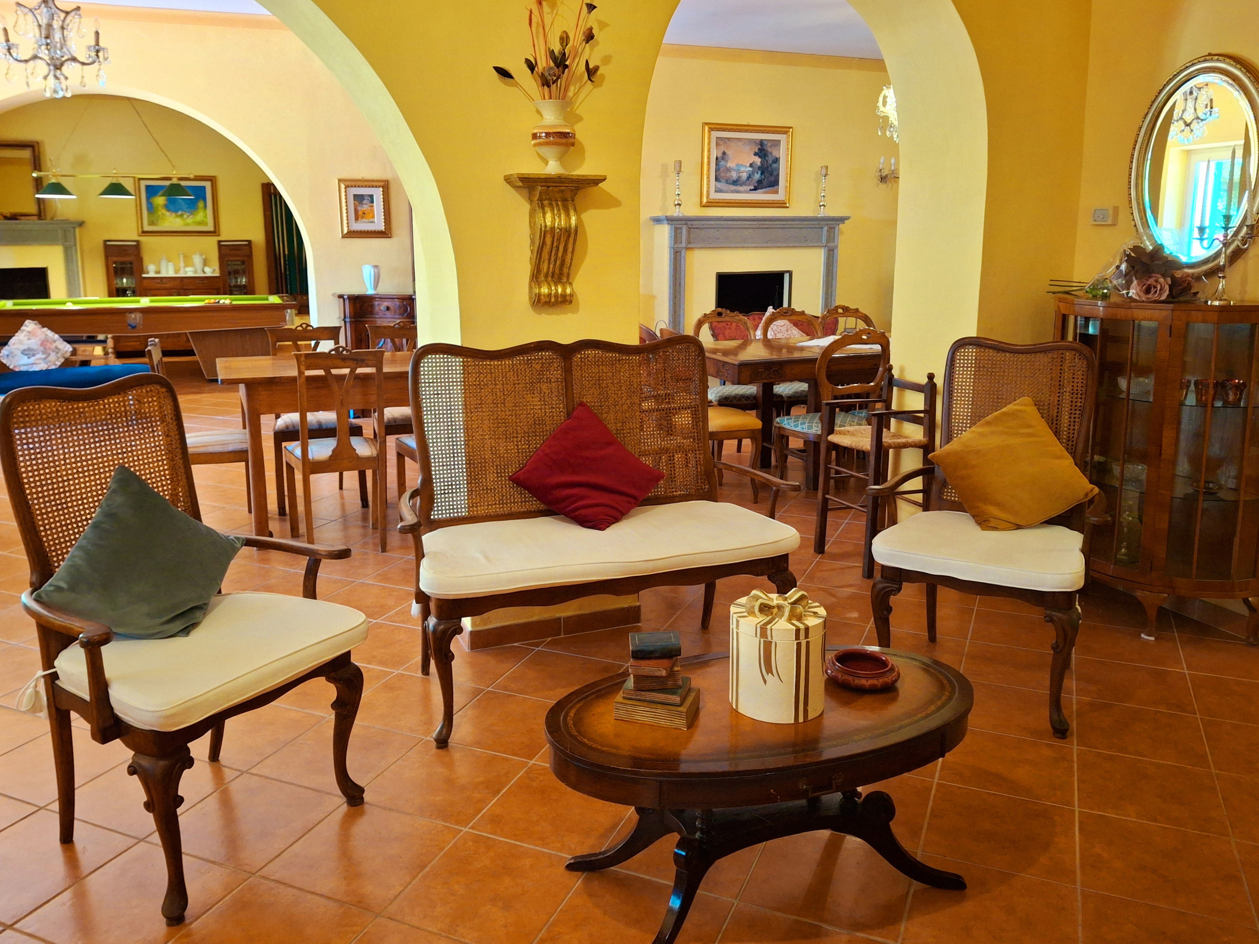The historic park is enriched by a beautiful infinity pool (6x12m), a barbecue area with gazebo, whirpool bath next to the pool, outdoor area with games and volleyball court. There is an excellent Wi-Fi connection, both inside and outside the building, including the pool area. The villa is equipped with a safe, private parking, a large park with holm oaks and cypresses.