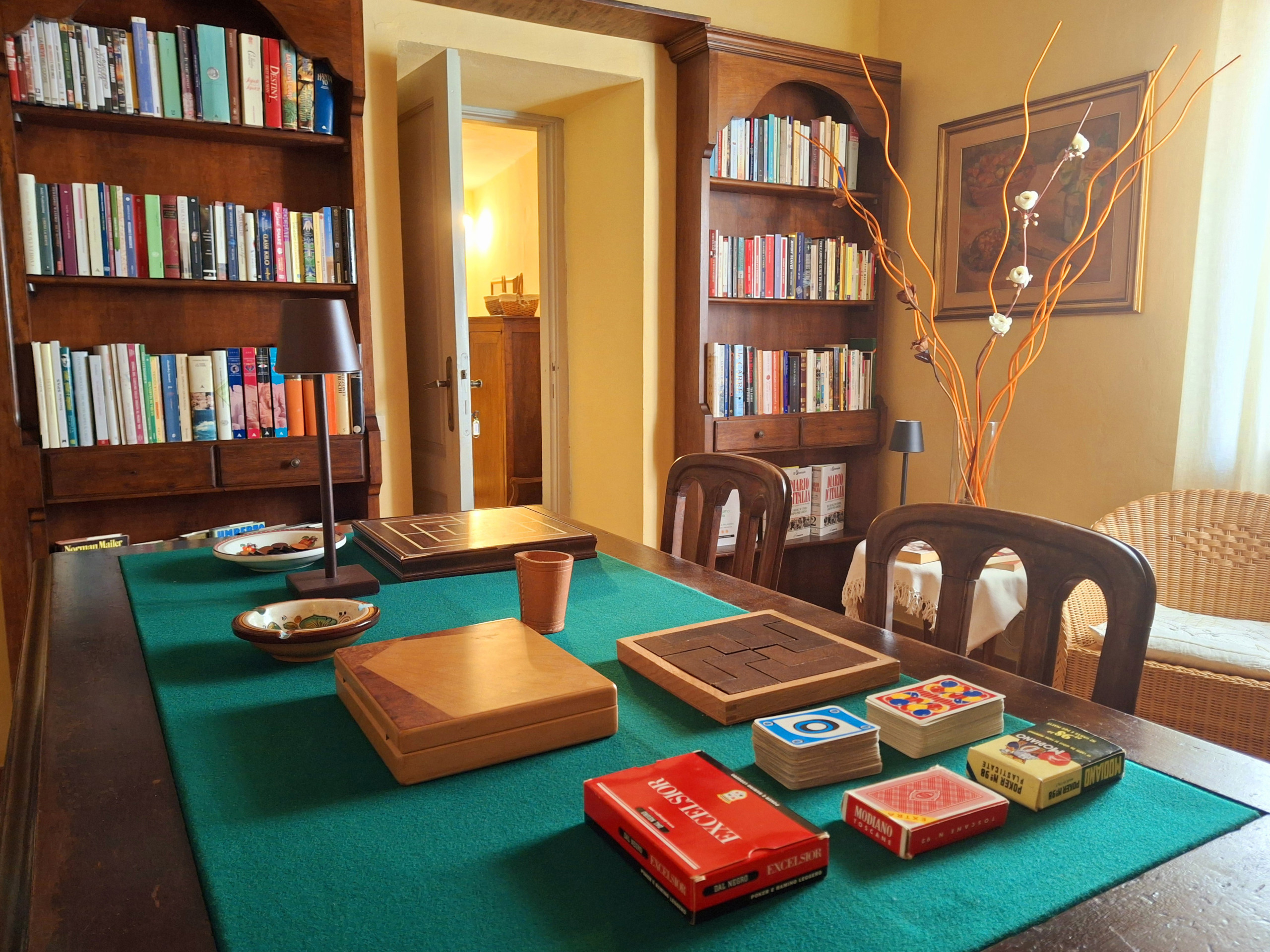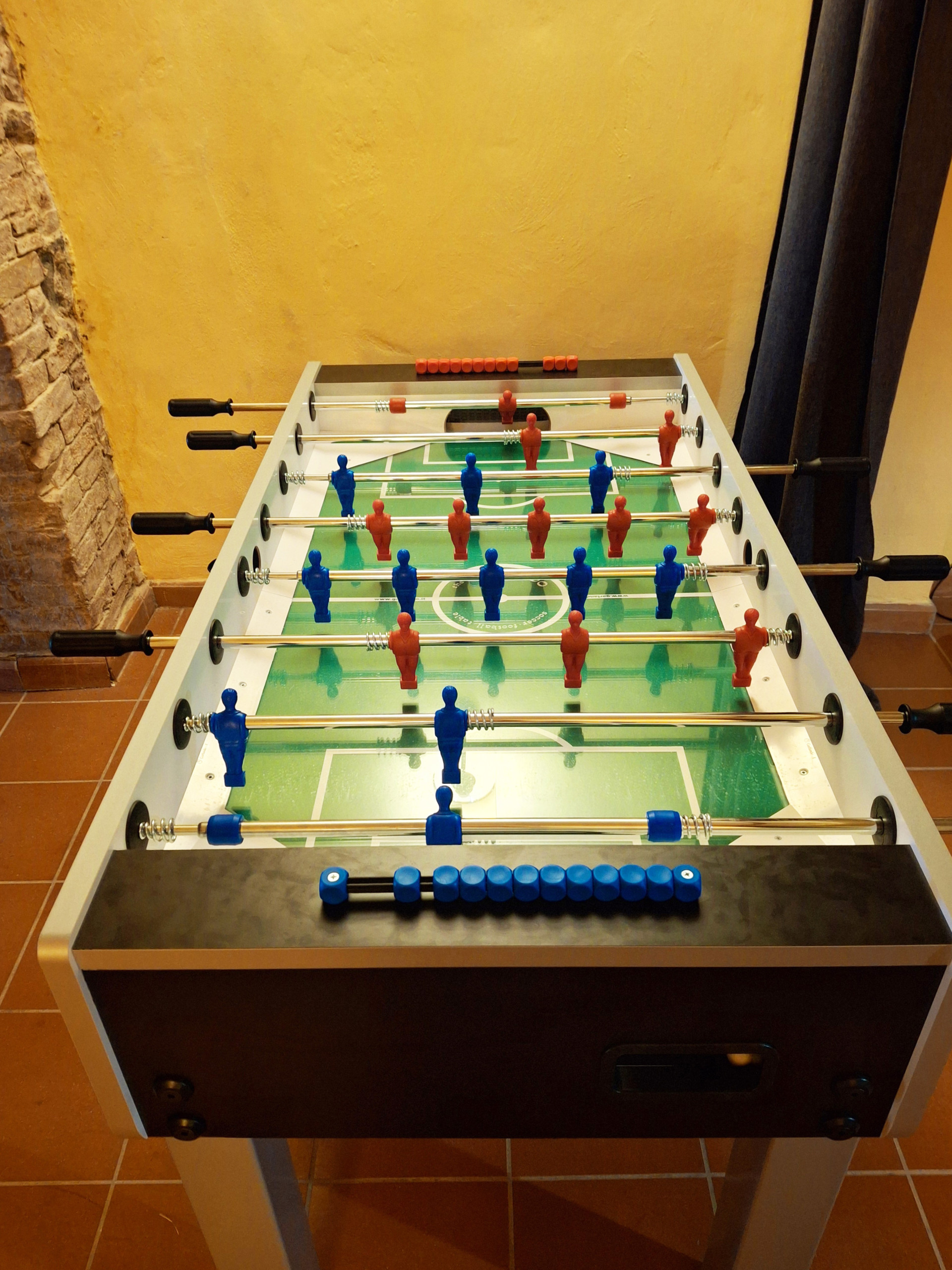 On the ground floor a study, a cozy bar area with professional espresso machine and a well equipped kitchen, with dishwasher, two refrigerators, a freezer, electric oven, microwave, 2 kettles, 2 toasters, juicer. On the ground floor there is also an ironing room / wardrobe, a small living room with TV, billiard room, fitness room, relax room with ping-pong and a bathroom with shower.