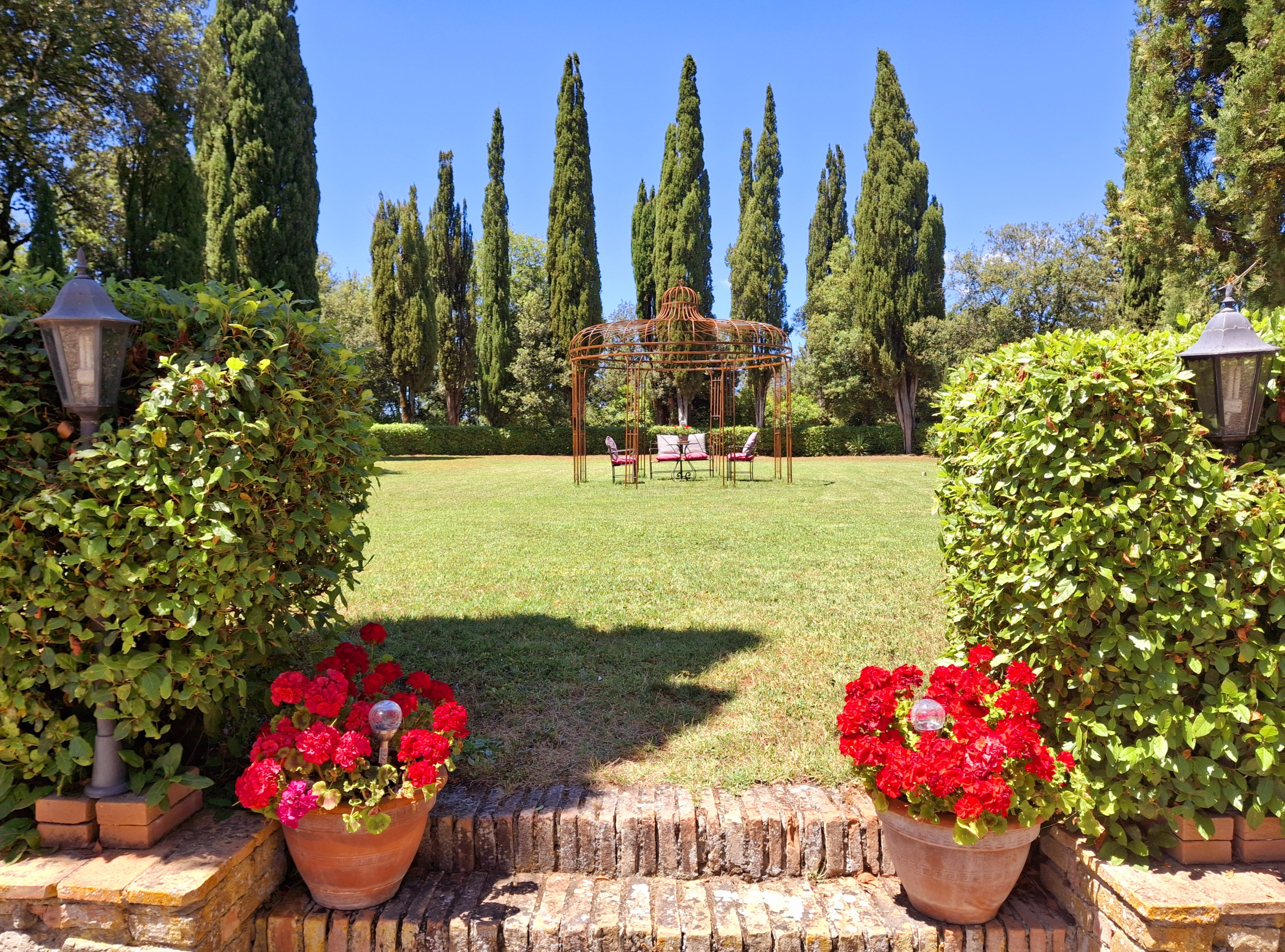 La Magione is an elegant villa, in Florentine style, in the heart of the Val d’Orcia, built in the second half of the 18th century on a previous high medieval village linked to the route of the Via Francigena. Surrounded by a park of holm oaks and cypresses and placed on a hill in an extraordinarily panoramic position, the Magione is today a refined residence, conceived and furnished as a private villa where you can breathe the history and the grace of the past, open to guests and friends. Made even more elegant by a large circular garden at the entrance and ideal for events, an ancient hunting lodge, the villa preserves intact the features of the eighteenth-century farm created for banquets and ceremonies linked to the arrival of spring and the fertility of the earth.