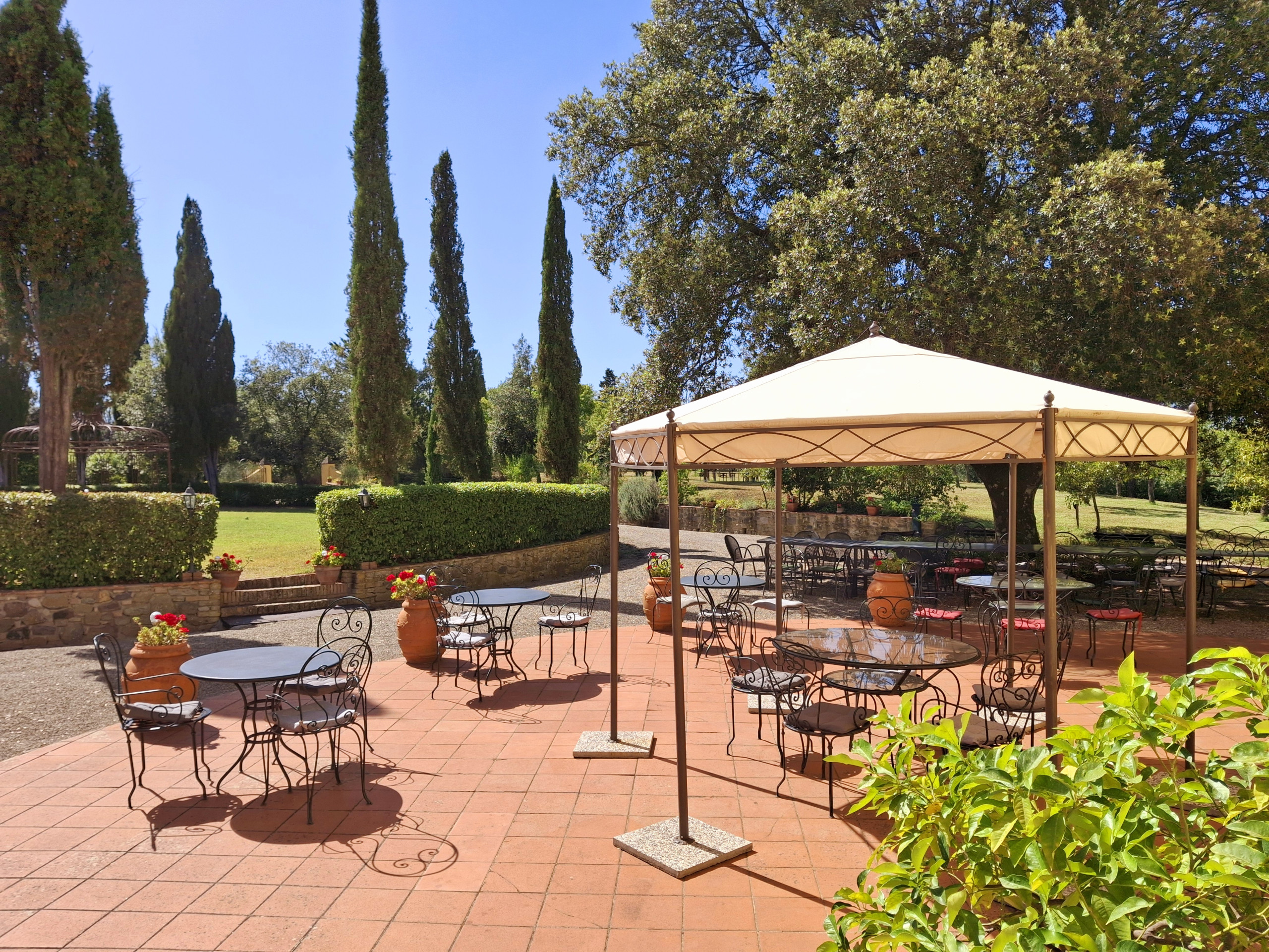 La Magoine is a charming farmhouse characterized by large lounges, the sober and elegant furnishings, the piano, the billiards, the fully equipped kitchen, the small gym, the yoga room, the table tennis area. Thirteen rooms each with en suite bathroom, the large terrace on the valley, the patio, the solarium, the garden, the park, the landscape all around.