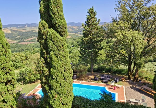 The villa in Radicofani has 14 bedrooms and has capacity for 28 people. The villa is 700 m². In Tuscany, in the centre of the magnificent Val d'Orcia, welcomed by an iconic landscape in a country villa surrounded by a farm where the environment, biodiversity and sustainability are respected.
