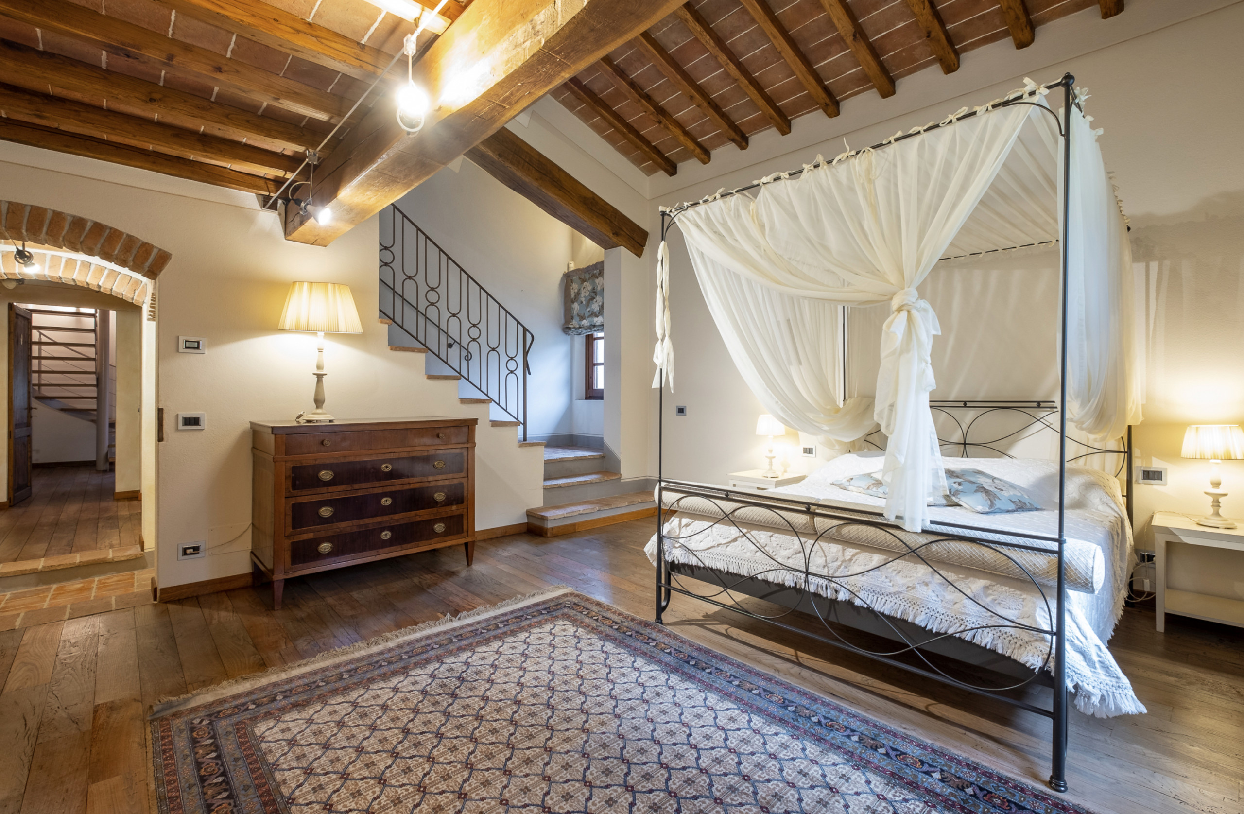Villa Rossa possesses that rustic warmth typical of Tuscan country villas. The Tuscan style captures you and you will fall in love with the wooden or brick floors, wrought iron beds, large and comfortable divans covered in earthen colors, vaulted ceilings and arch ways. The style has its roots in the semplicity of country living, with all the trades and customs attached to it warmth, welcome and family. All the bedrooms have ensuite bathrooms and AC.
