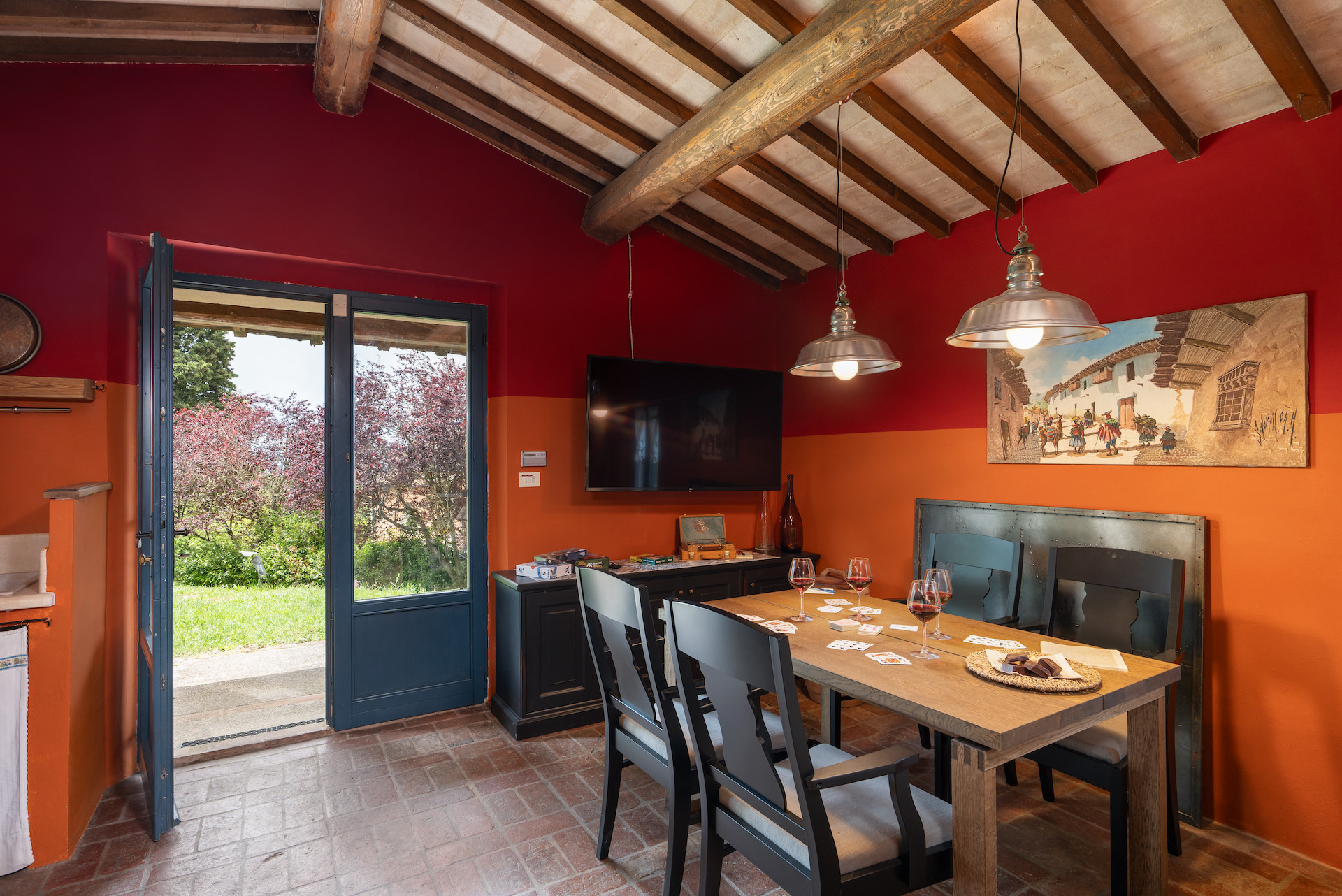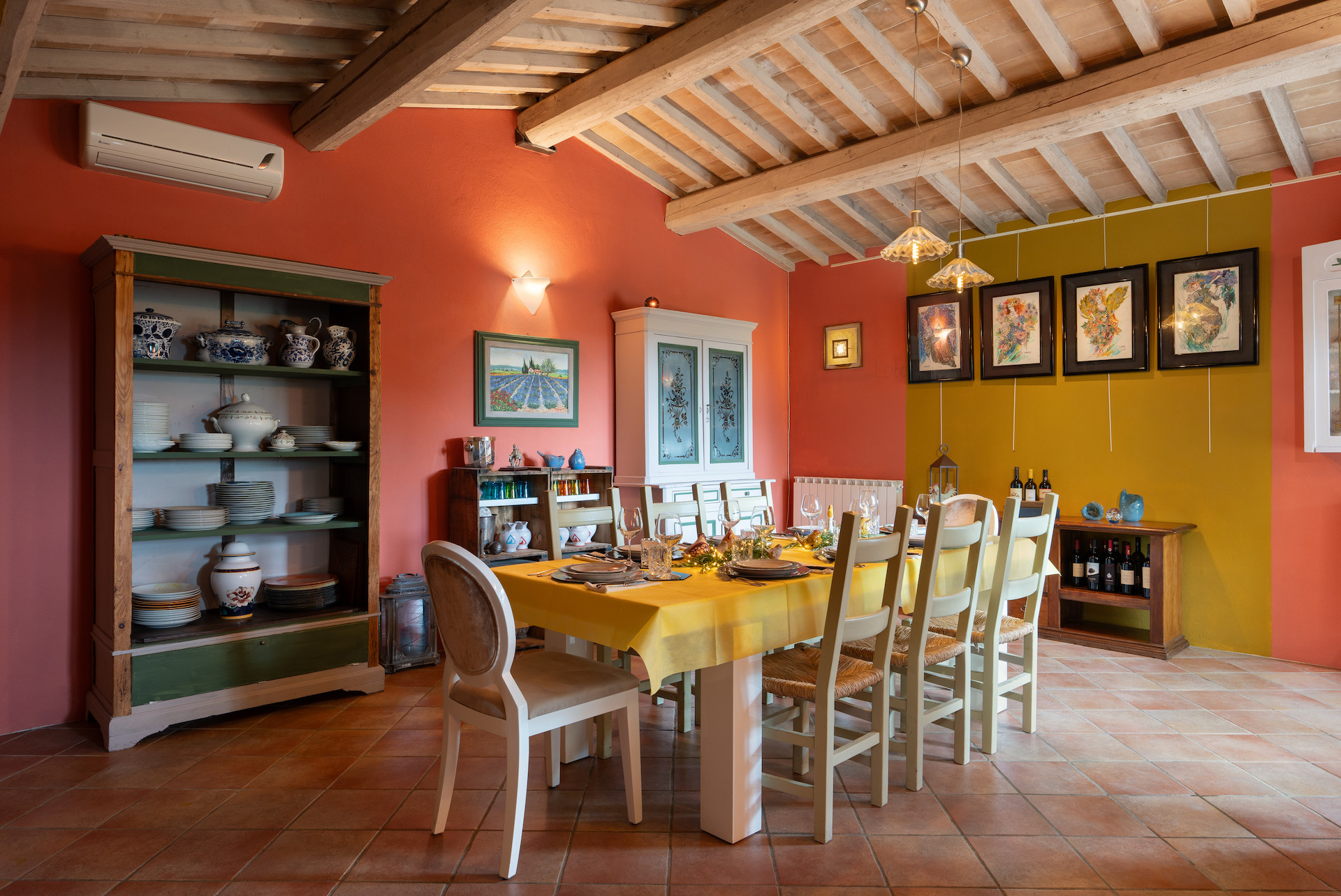 The building is surrounded by 360degrees of gardens, shady areas, oak and olive trees, fruit trees and areas of uncontaminated Nature. At night, lights and candles transform the pool area into a magic place for dining, having an aperitif or just looking at the stars. A few metres from the villa there is a small restaurant for the exclusive use on request, of the guests. The chef, Francesco, prepares lunches and dinners guiding the guests in tasting the local products and specialities, with genuine Tuscan recipies. Special attention for vegan, vegetarian, gluten free and allergy menus. Francesco also organizes cooking lessons and pizza parties.