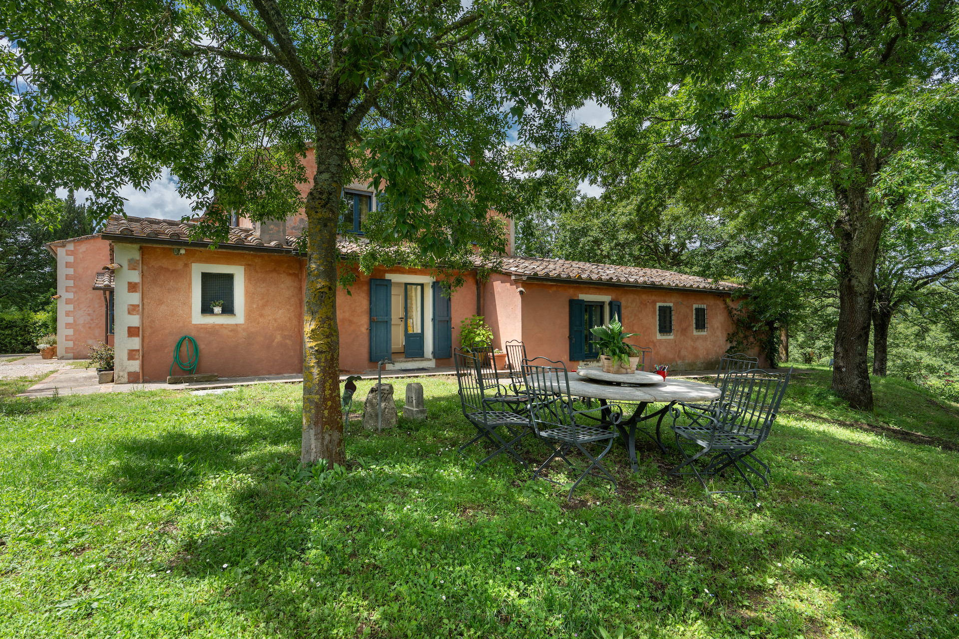 The villa is divided into five areas. The dining room with a great dining table, a pallet fireplace next to the fully equipped kitchen, with access to the garden and the pool terrace. There is a lounge room with books, satellite tv and video cassettes for small children. Bathroom with wc and hand basin. Beside the lounge room there is access to the pergola, shaded with wisteria, with a table for 8, particularly appreciated in the hot Summer afternoons for an aperitif. There is a night area here, with 3 bedrooms for adults and children. There is also another night zone with 2 bedrooms completely autonomous in respect to the rest of the house. Going up to the next floor there is the lounge of the great fireplace, panoramic, full of light with comfortable divans for the entire family or a numerous group of friends. A pallet fireplace warms the cooler evenings and the satellite tv and dvd complete the entertainment area. A beautiful covered terrace offers the opportunity of tasting the specialities of the area together with a glass of wine, overlooking the woods. On the same level there are also 2 elegant bedrooms.