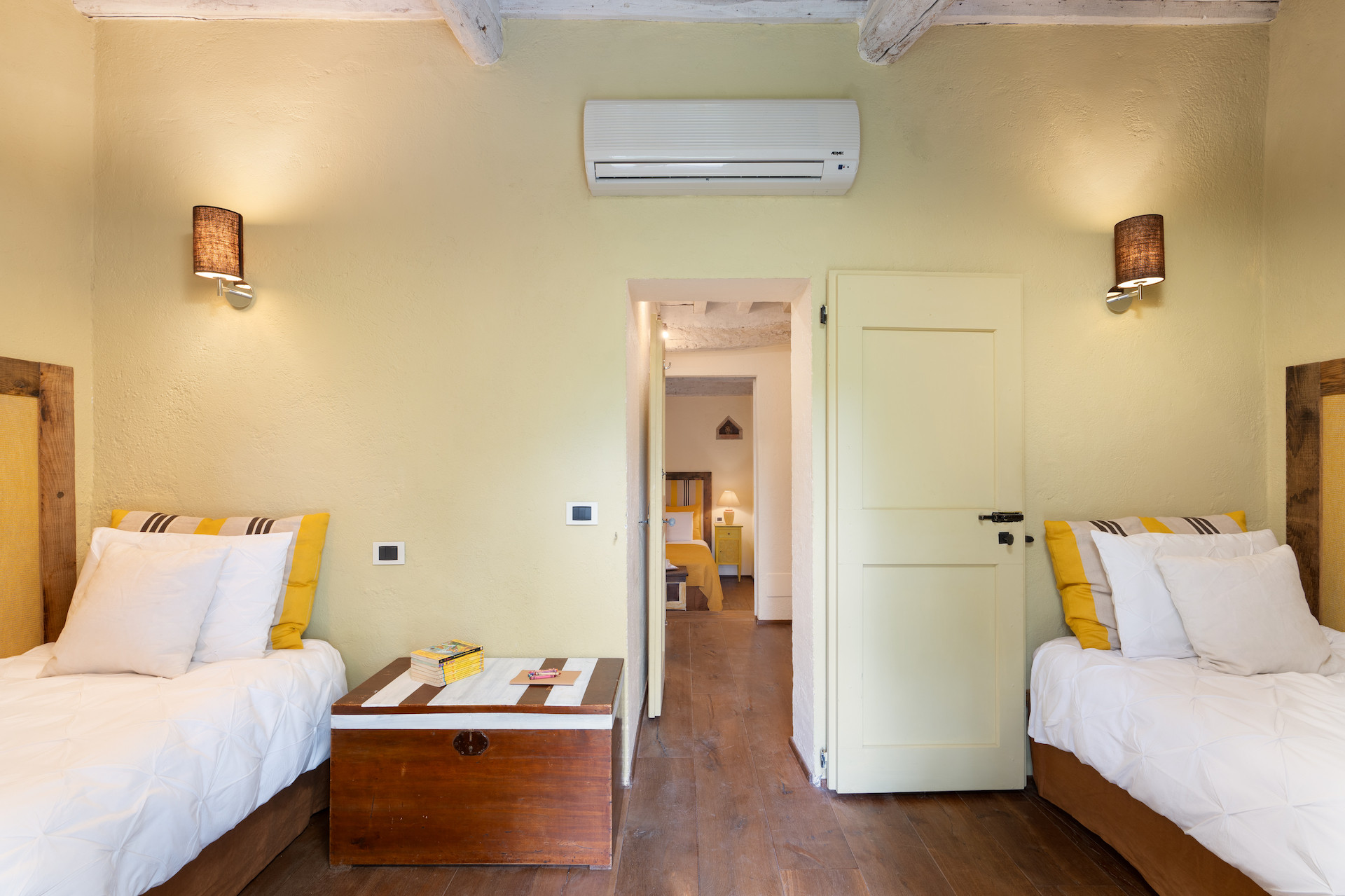 A large sandbox for children or a beach for adults is inserted in the pool area. Dining table under a wisteria pergola next to the kitchen. Covered gazebo with large sofa area facing the pool. Covered terrace on the first floor of the villa. Cottage a short distance from the villa equipped with a wood-burning oven for pizza parties. Cottage with smart working area with large smart TV screen, table for board games, fireplace and wine area available to guests. Restaurant for exclusive use only for guests where dinners and events take place a shortndistance from the villa to guarantee total privacy in the villa, avoiding kitchen smells and tidying up noises after dinner.