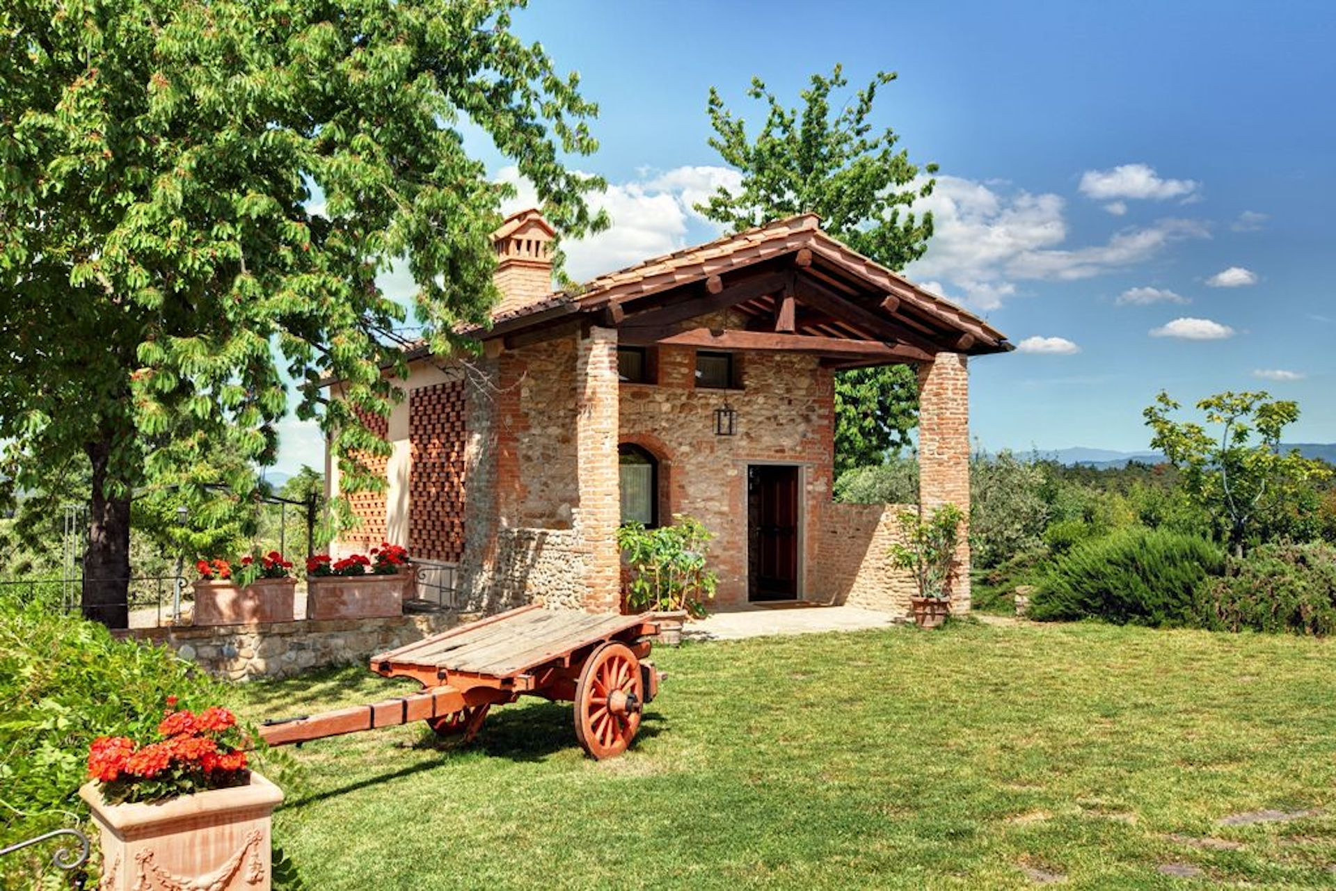The villa is well cared for and tastefully furnished in the typical, Italian style. Arriving at the villa one is immediately struck by the colours and the perfumes of the traditional, Tuscan garden, vegetable garden and fruit trees. The stone walls, the flower gardens and the luxury of the plants are the results of particular care and attention.