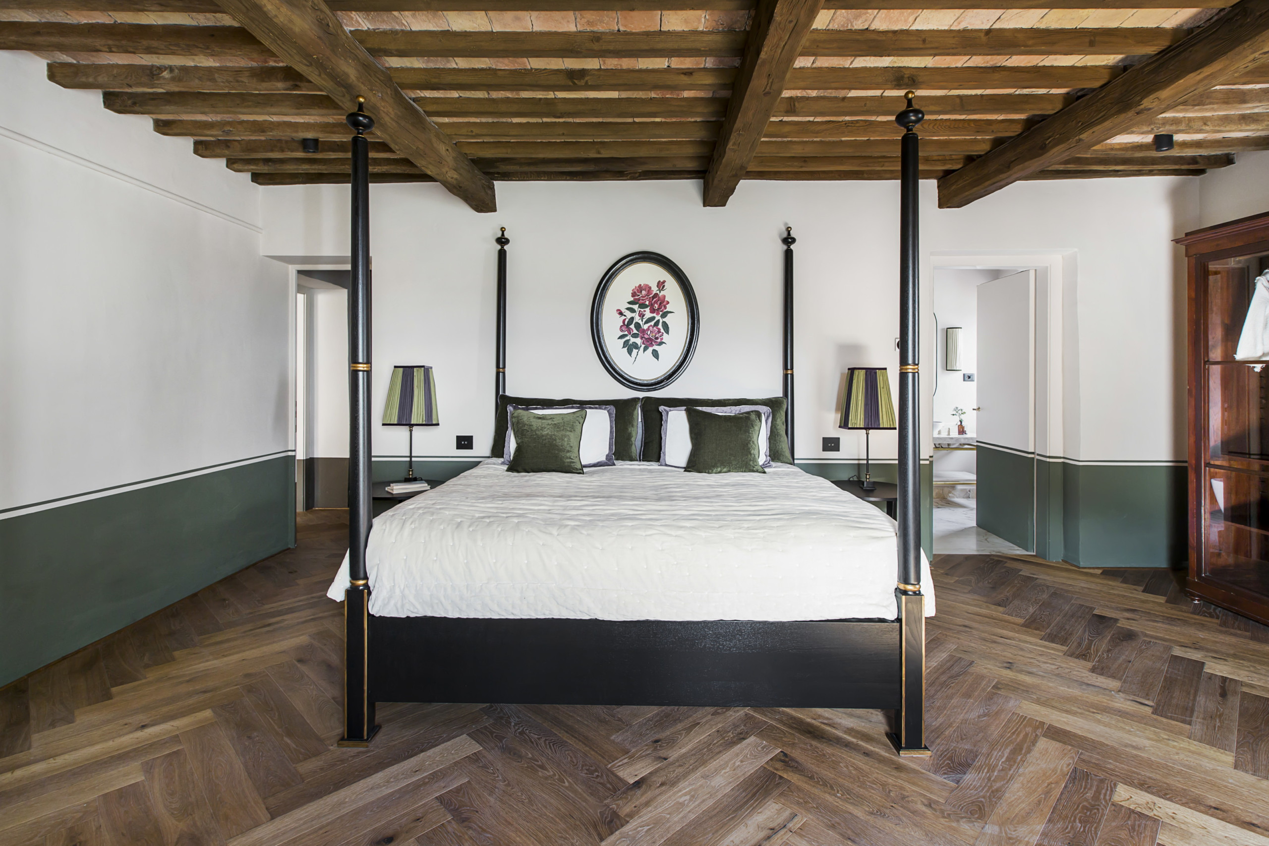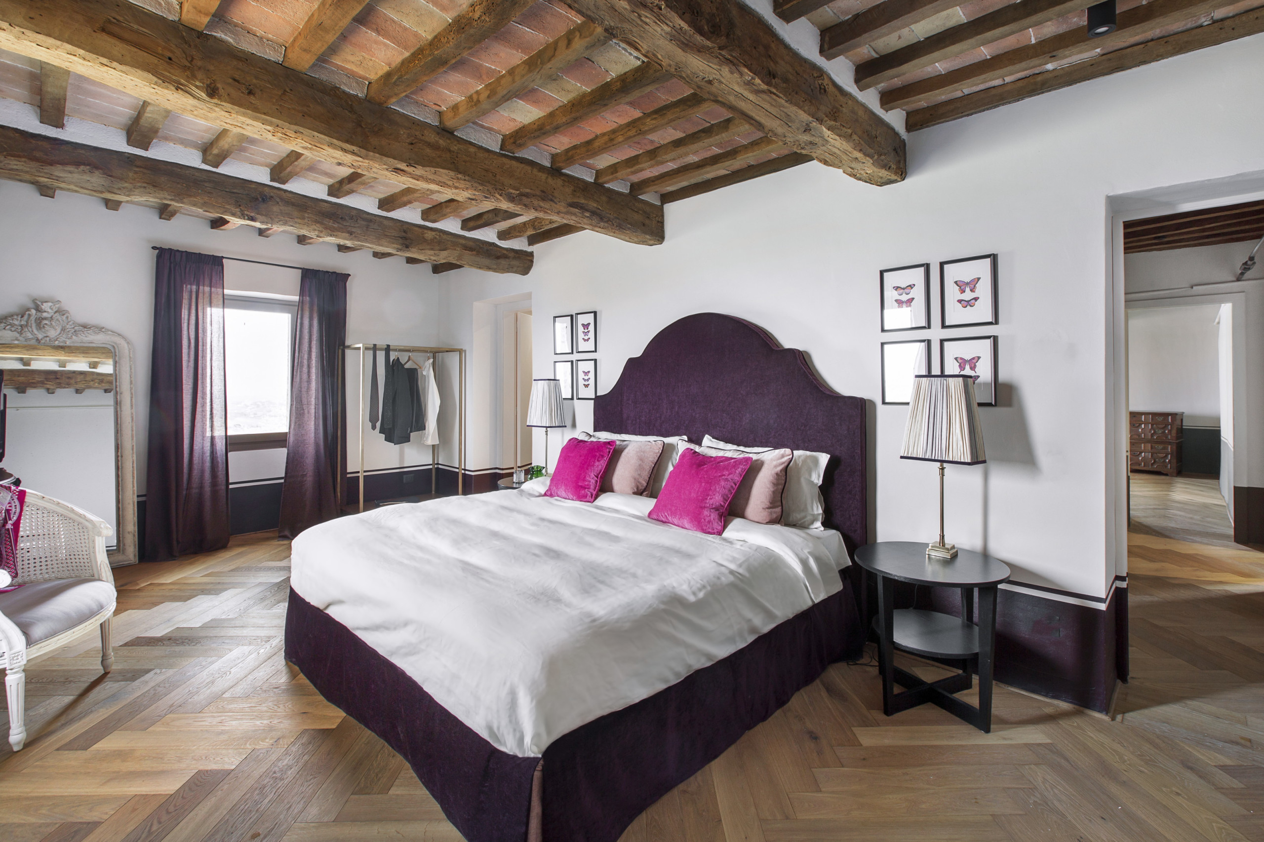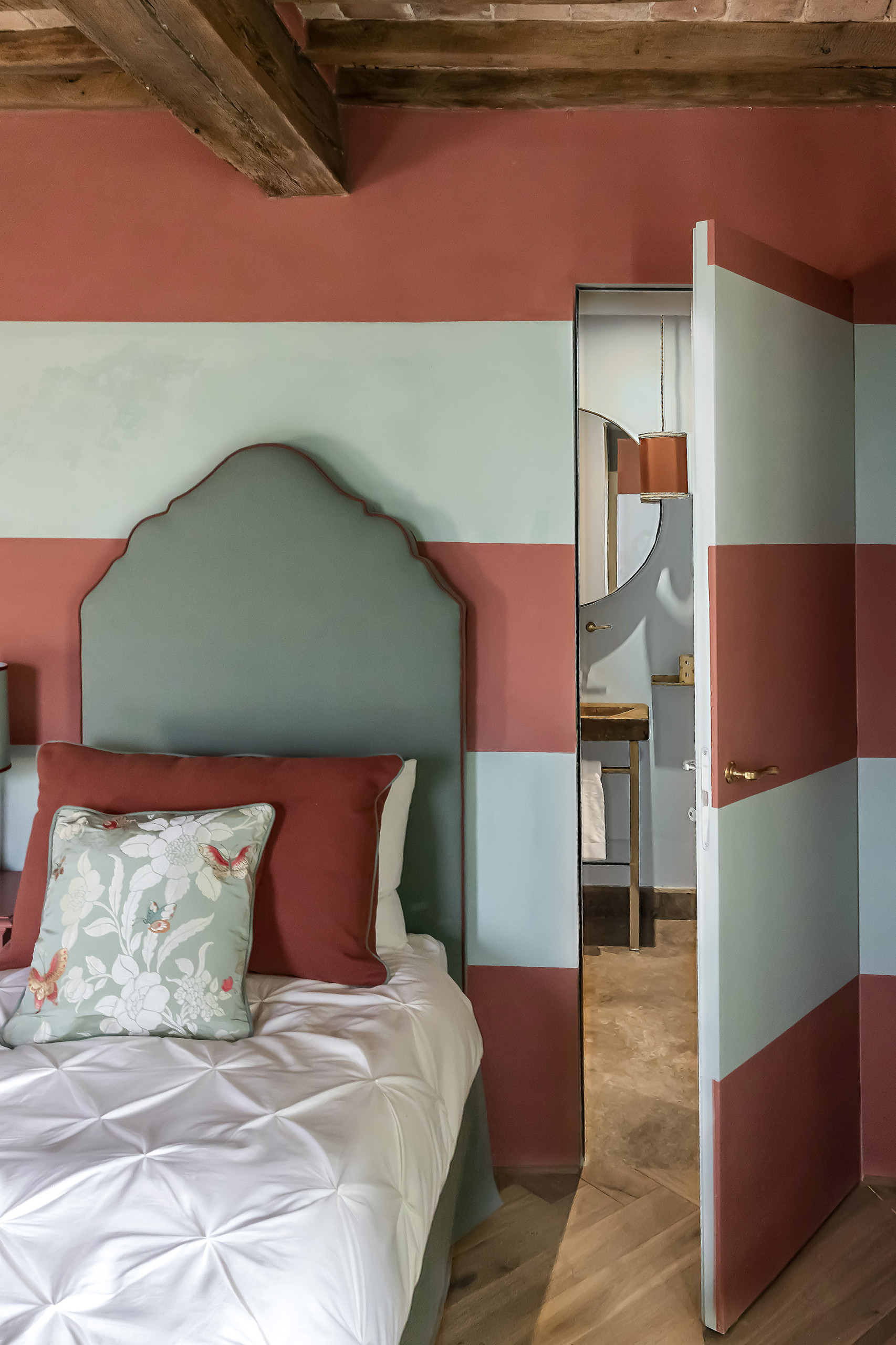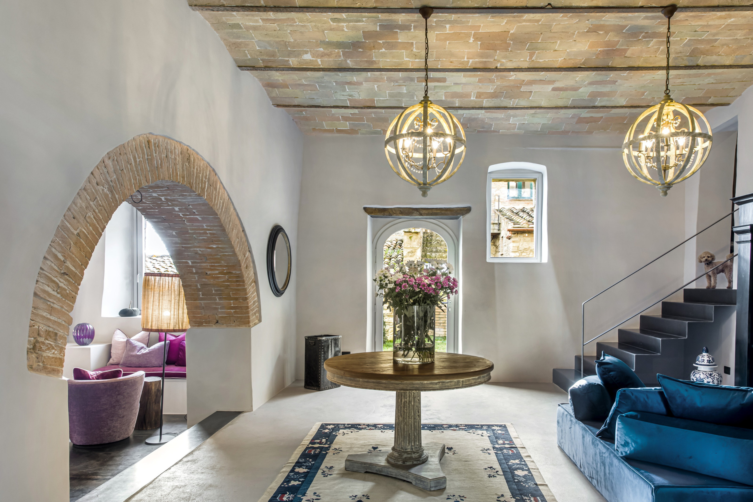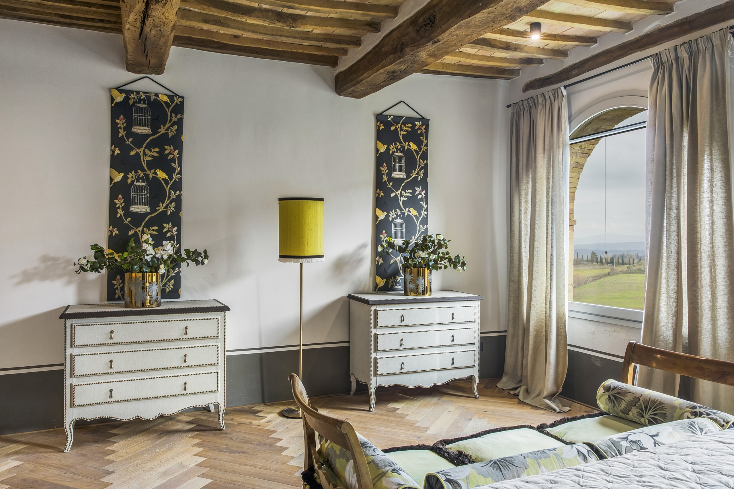 Handcrafted furniture and a modern eye for color breathe new life into this 16th-century former convent set between Tuscany’s Val di Chiana and Val d’Orcia. The interiors have been tastefully renovated in 2021 by the designer who desired a modern style combined with a few traditional items. All the bedrooms are equipped with air conditioning, TV and elegant en suite bathrooms beautifully decorated by travertine marble.