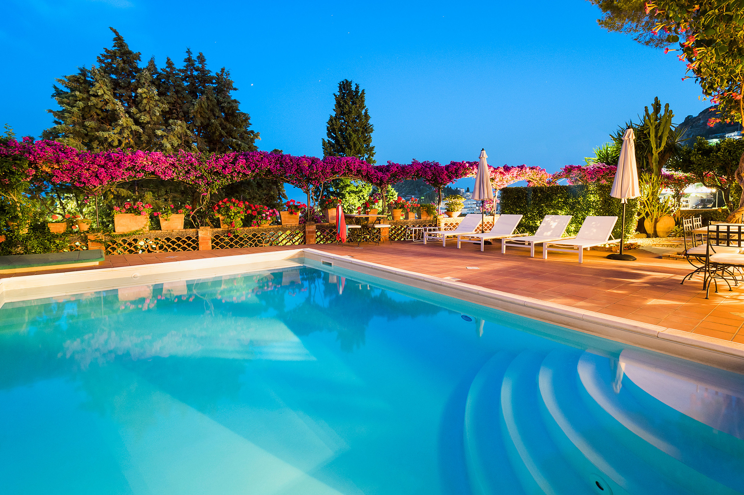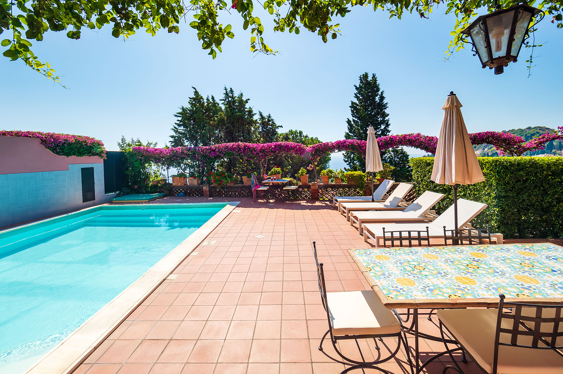 The villa in Taormina has 5 bedrooms and has capacity for 10 people. The villa is 400 m². Refined and prestigious, this splendid property is situated in close proximity to the Greek Theatre and to Corso Umberto, but also to a wealth of smart boutiques, restaurants and clubs that are in Taormina centre. Overlooking the garden and the pool, villa Villa Mandorla offers several equipped areas which are