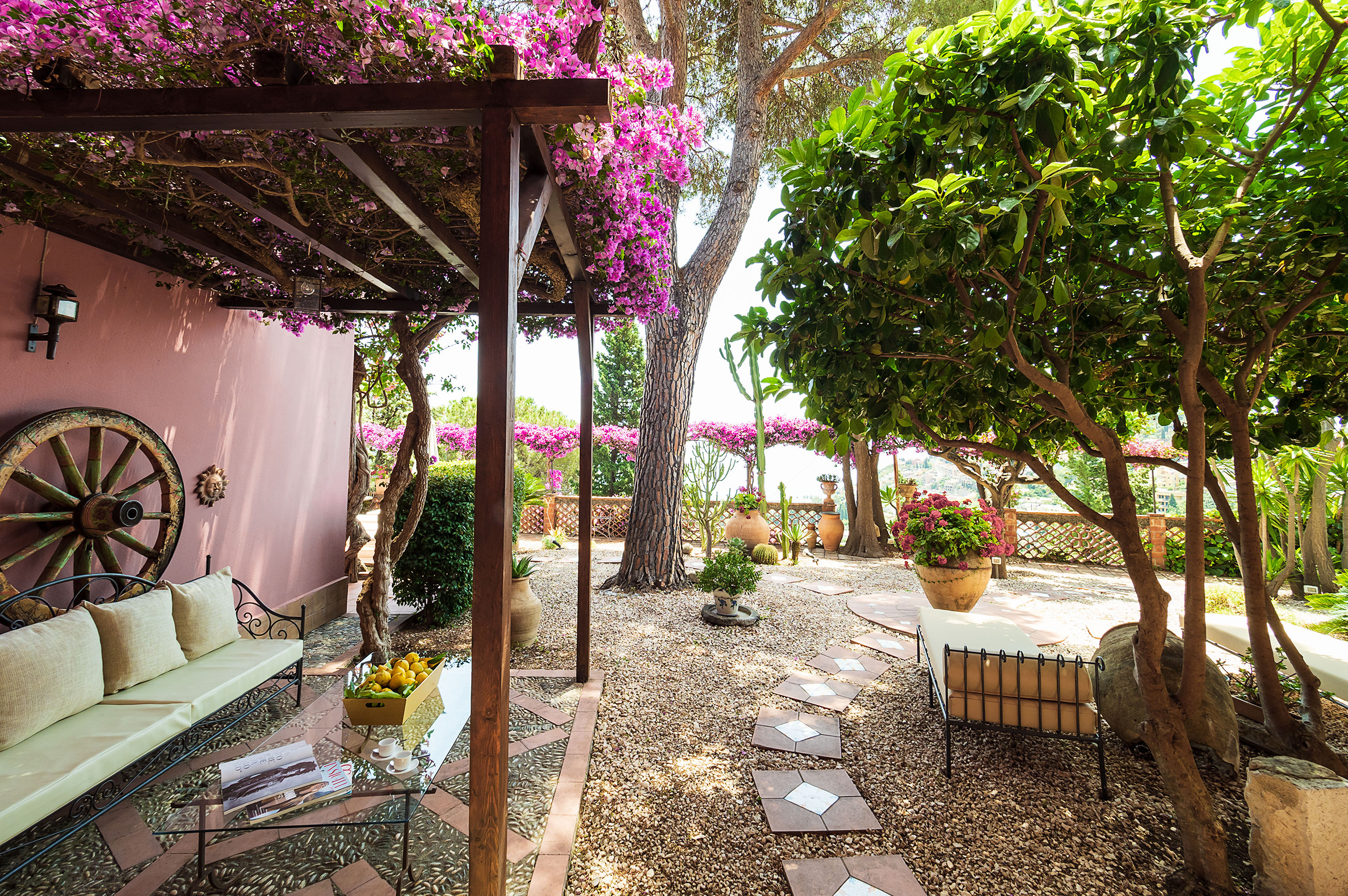 Villa Fico d'india is an exclusive property with swimming pool located a few kilometres from Taormina and Giardini Naxos. Set in a quiet, residential area, the villa offers enchanting views out to sea,