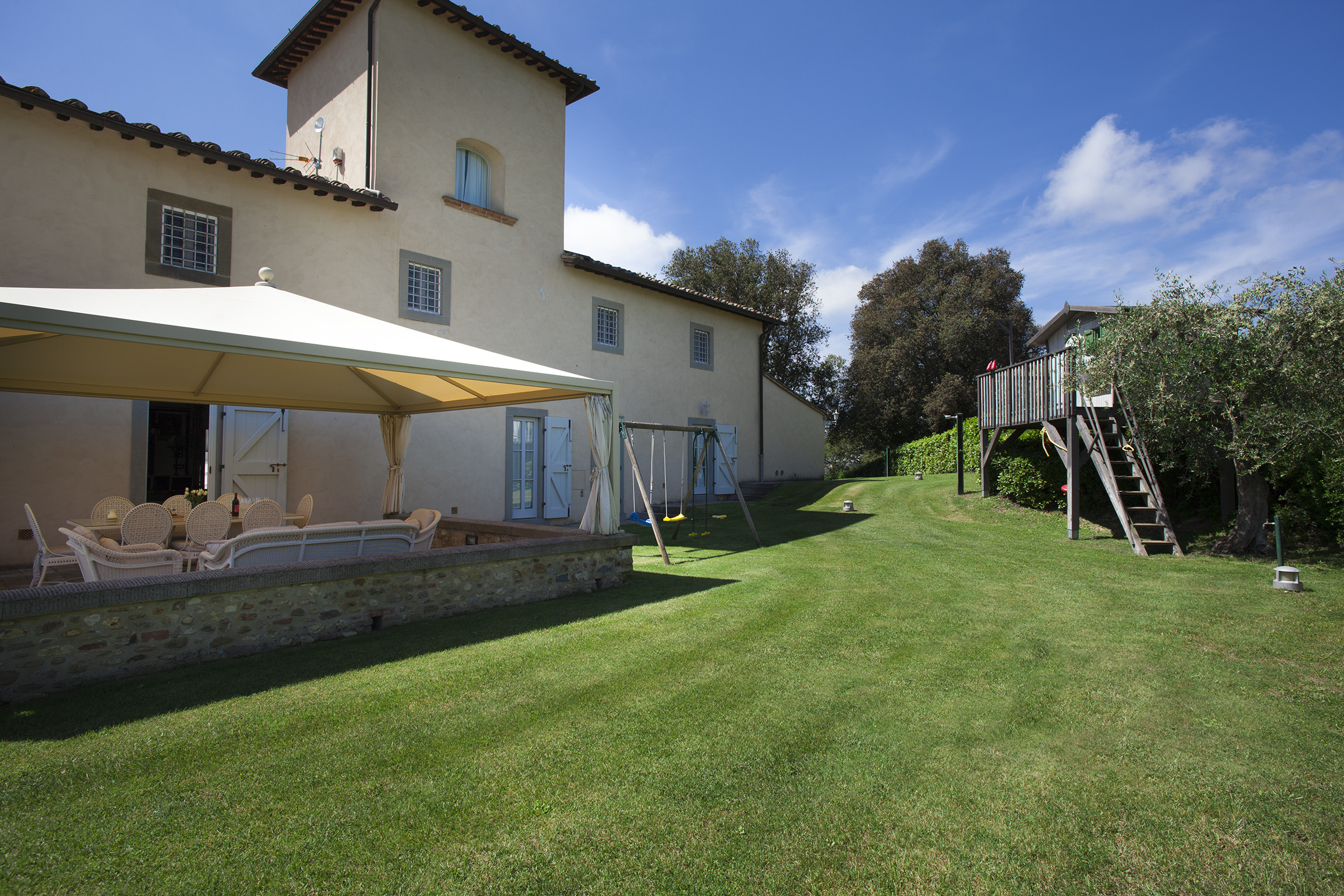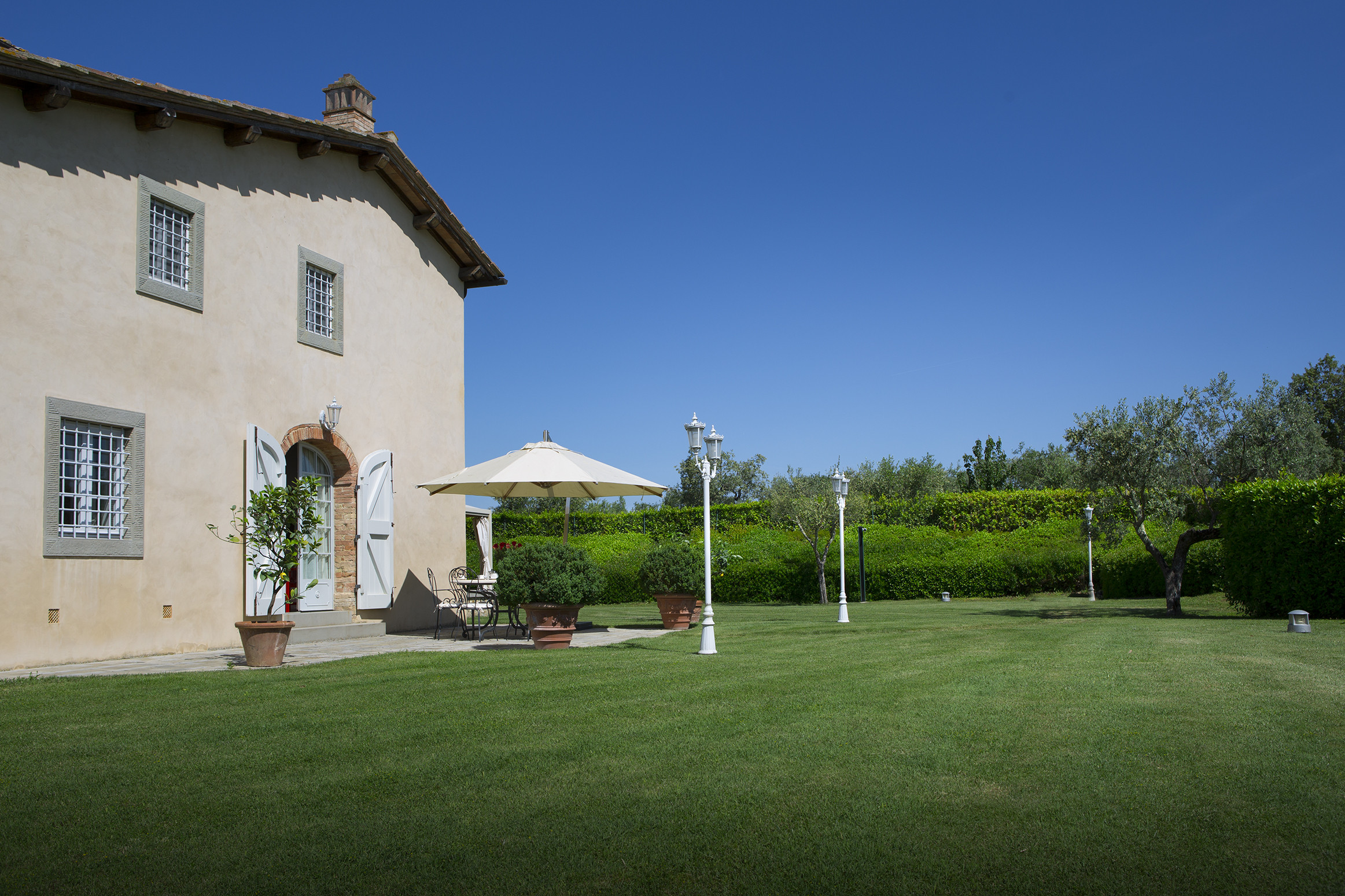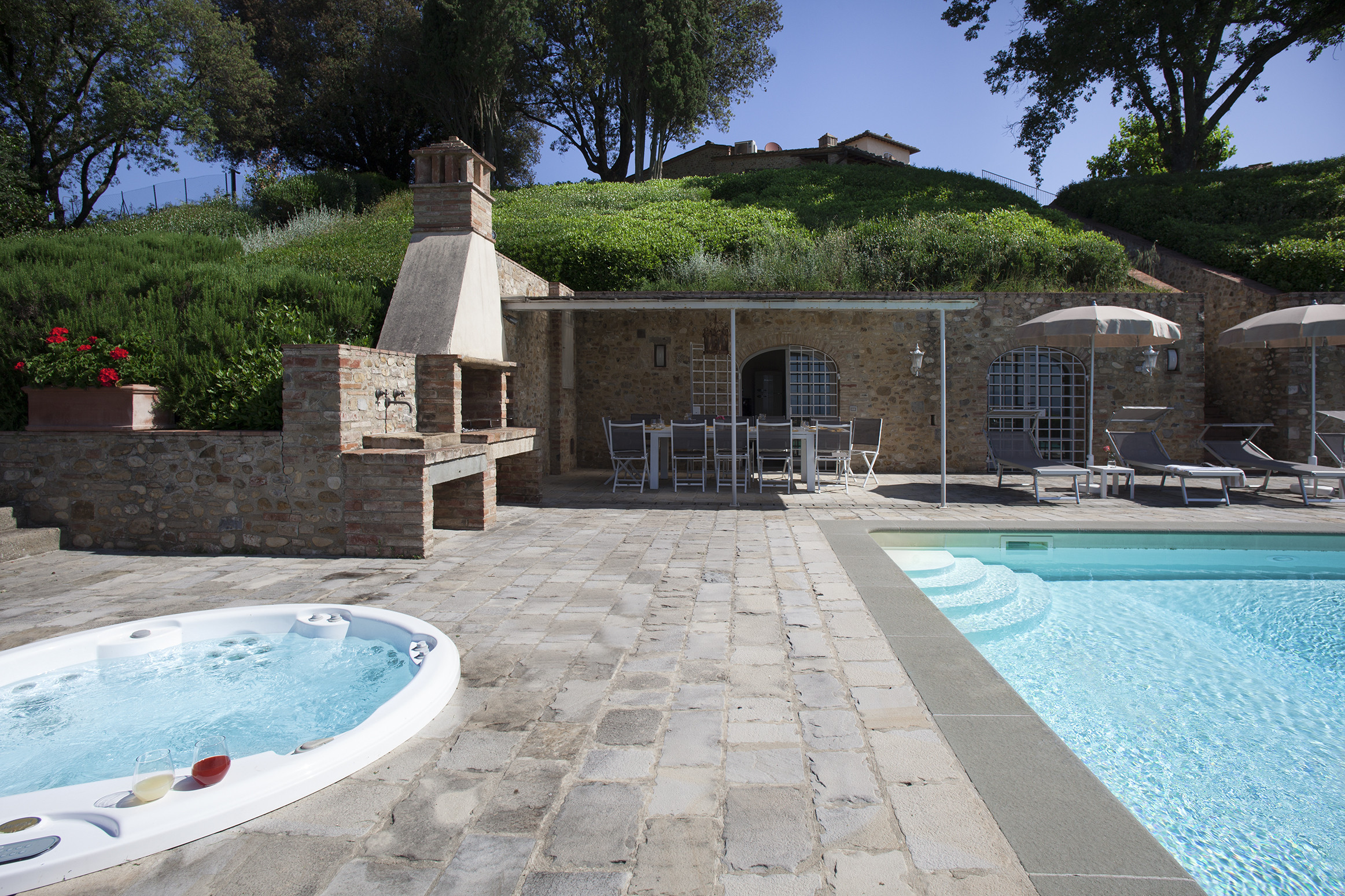 On your arrival you will be welcomed by a beautiful driveway surrounded with cypress trees, magnificent gardens with oak and olive trees, flowers of all the colours of the rainbow and lemon trees in antique terracotta vases. The masterpiece of the villa is the pool and the heated hydromassage. Defending the stone steps you arrive at the pool 6×12, surrounded by perfumed gardens and with a view of the Chianti landscape, a perfect place to relax and cool down in a Tuscan Summer day. At the edge of the pool is the BBQ area, perfect for an “alfresco” dinner. A genuine Tuscan experience would not be complete without a spa. The entrance to the spa is at the back of the villa and occupies the whole ground floor. There is a Turkish bath, sauna and Jacuzzi which will always be at you disposition. This villa is the perfect spot in which to realize your “Tuscan” dream.