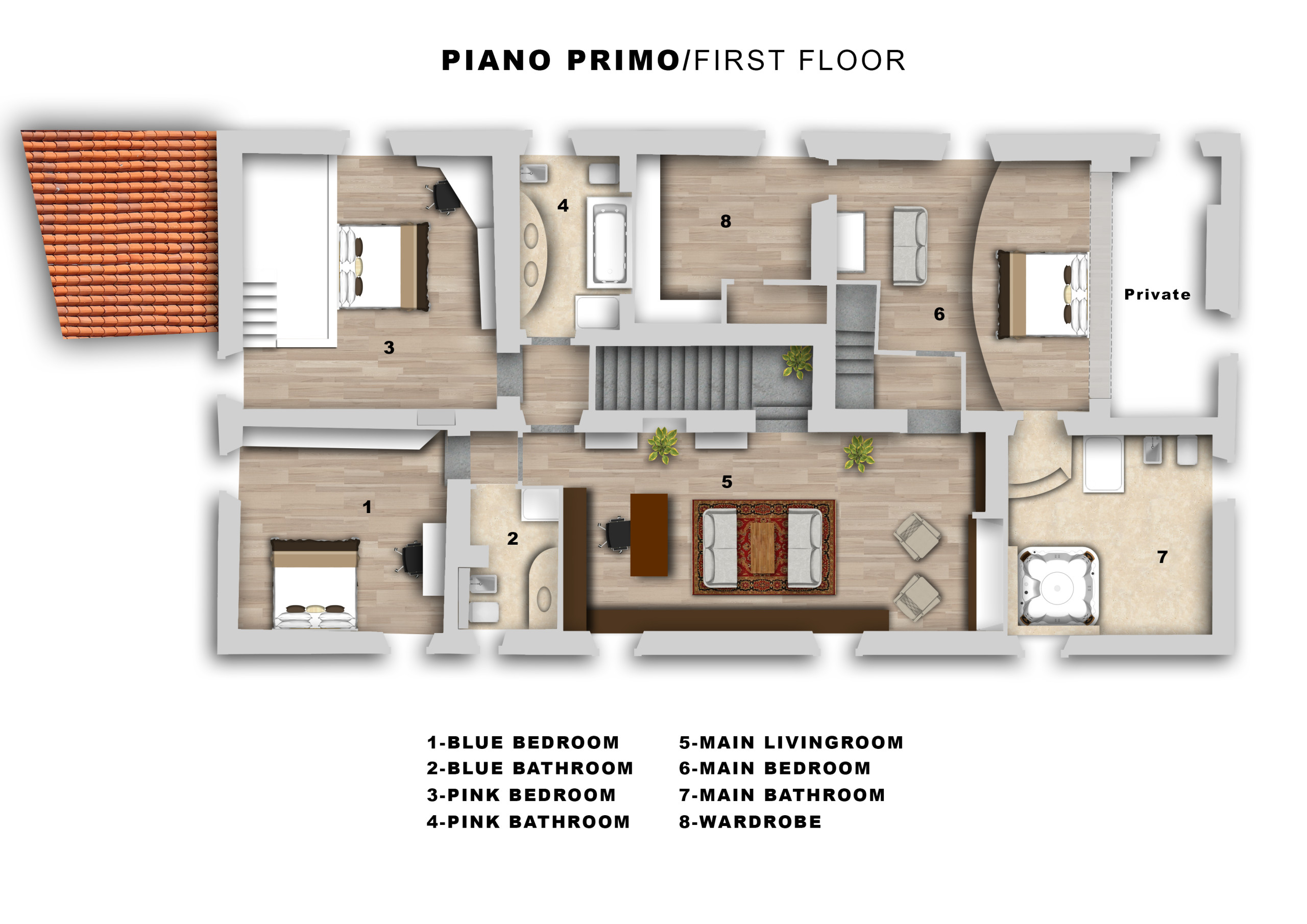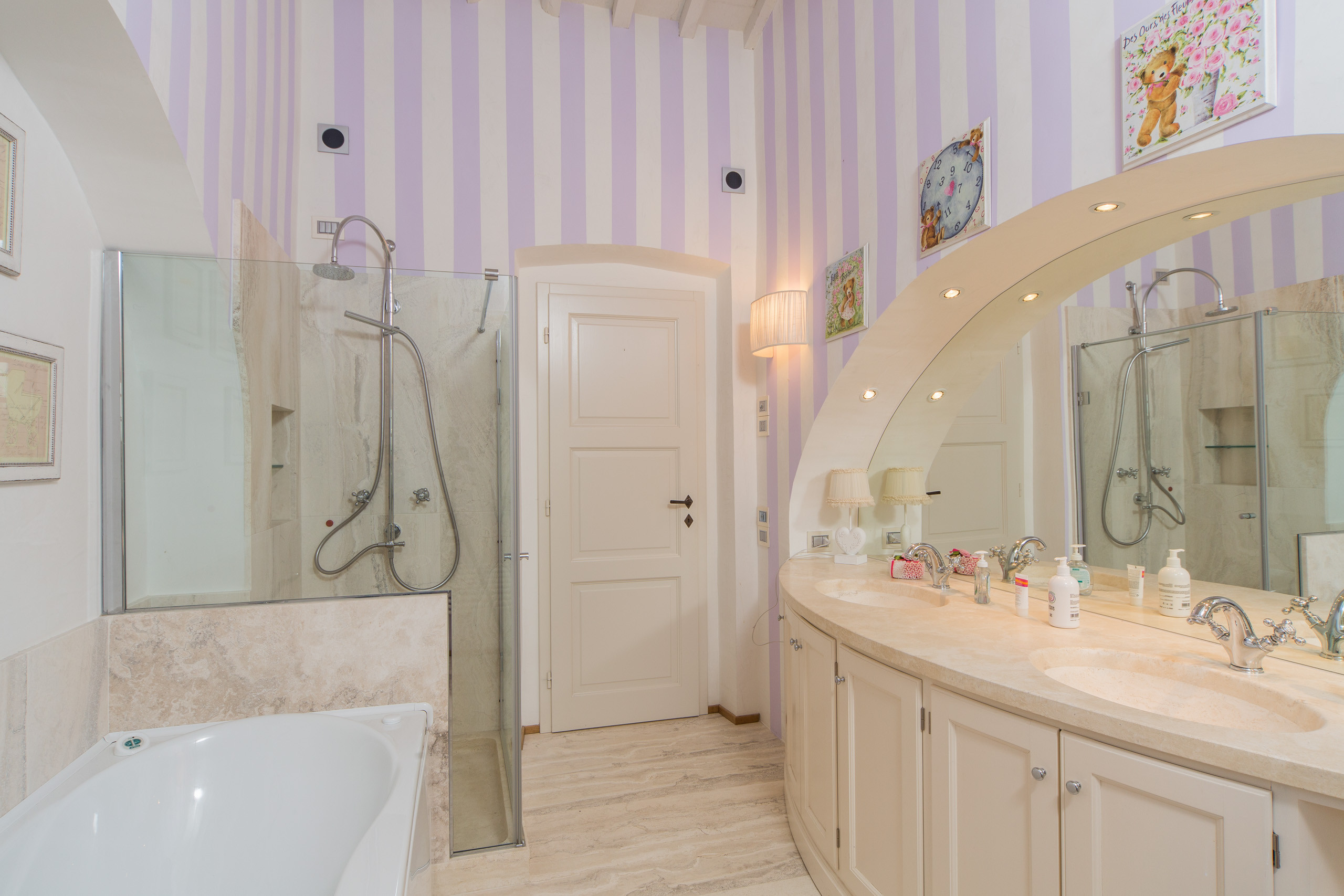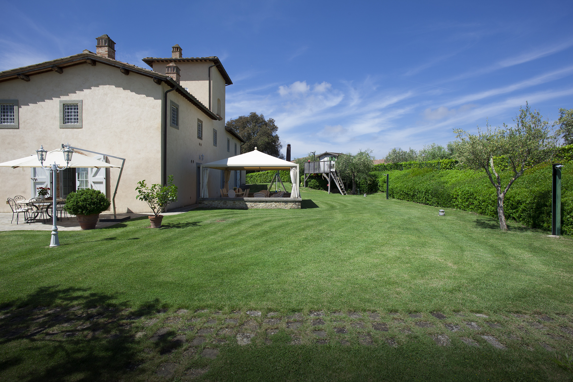 On your arrival you will be welcomed by a beautiful driveway surrounded with cypress trees, magnificent gardens with oak and olive trees, flowers of all the colours of the rainbow and lemon trees in antique terracotta vases. The masterpiece of the villa is the pool and the heated hydromassage. Defending the stone steps you arrive at the pool 6×12, surrounded by perfumed gardens and with a view of the Chianti landscape, a perfect place to relax and cool down in a Tuscan Summer day. At the edge of the pool is the BBQ area, perfect for an “alfresco” dinner. A genuine Tuscan experience would not be complete without a spa. The entrance to the spa is at the back of the villa and occupies the whole ground floor. There is a Turkish bath, sauna and Jacuzzi which will always be at you disposition. This villa is the perfect spot in which to realize your “Tuscan” dream.
