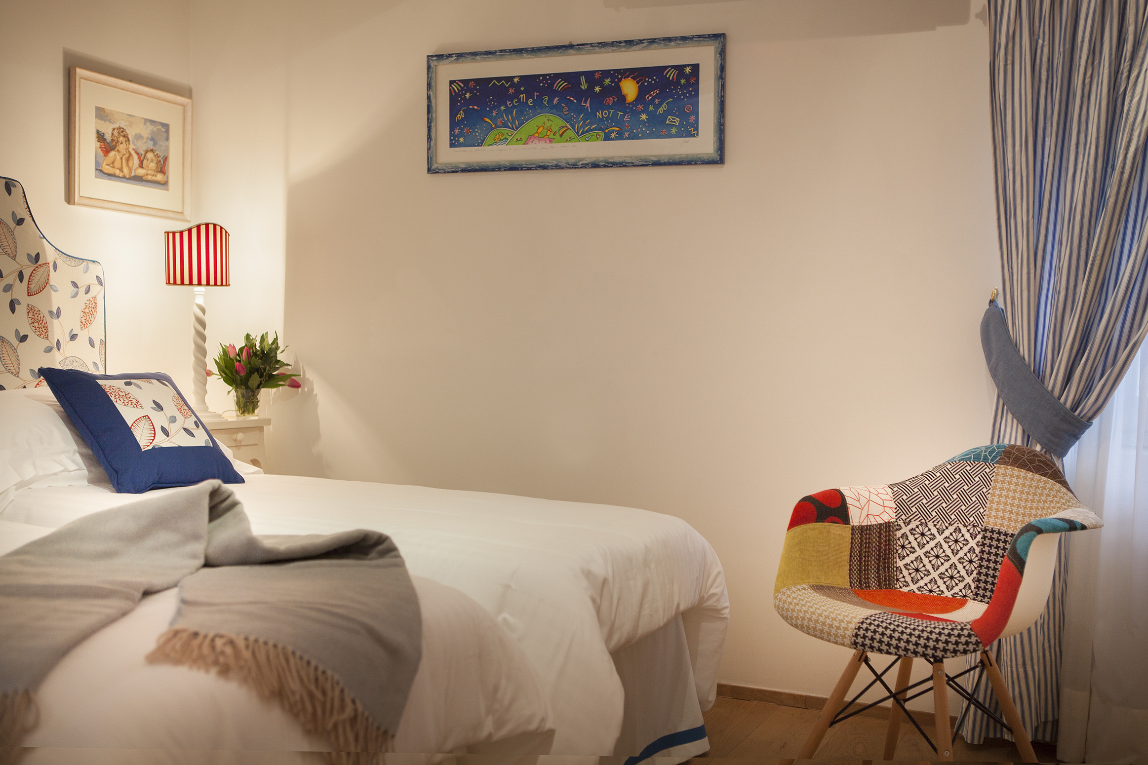 Attached to the villa is the “dependance” with two extra bedrooms sharing a bathroom with shower and a kitchen with dining area. One of the bedrooms has a double bed and the other, two single beds