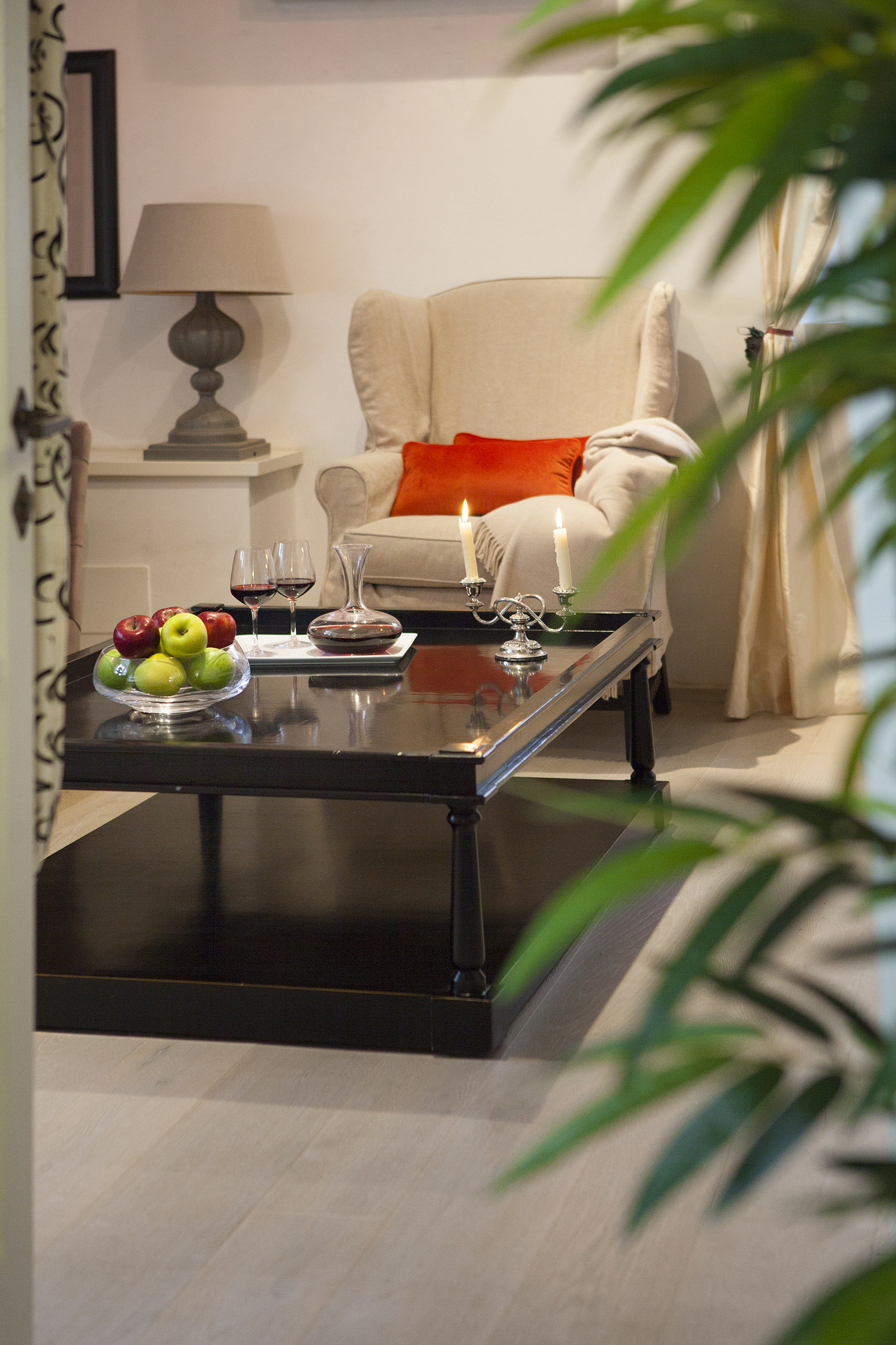 Up the stone staircase the first floor opens onto a spacious living room with fireplace and large and comfortable divans. This area, with its wooden beams ceiling, creates a pleasant and luxurious atmosphere with all the modern comforts you could desire. On this floor there are also four bedrooms, all with built-in wardrobes and ensuite bathrooms with bath rub and shower. These bedrooms are decorated in a fascinating way and have splendid views out over the countryside. There are 3